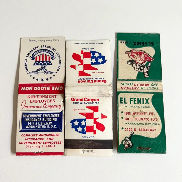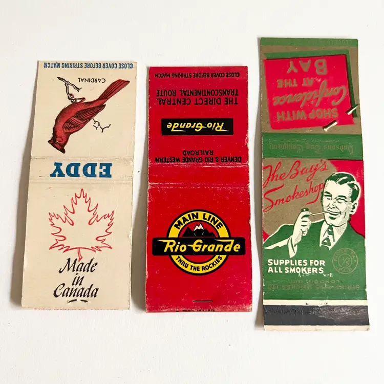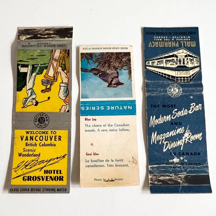 This set of 12 matchbook covers from Canada and the USA are very MCM! I just love the designs and graphics! Condition: used strikers and some creasing.