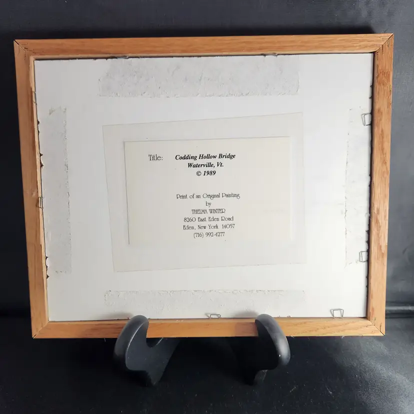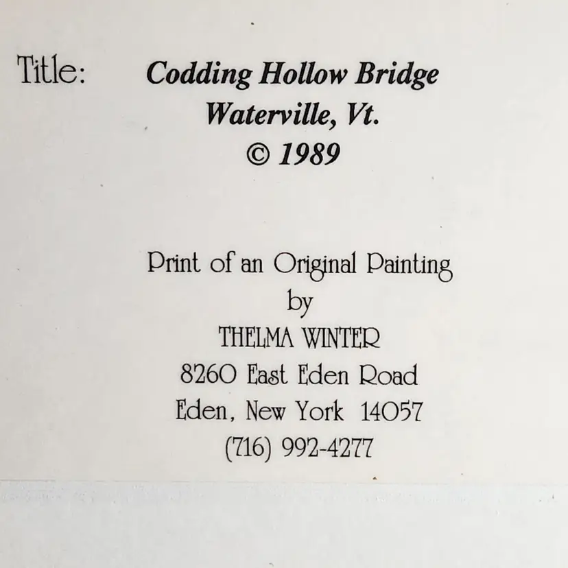 Codding Hollow Bridge (Vermont) 1989 Limited Edition #190/500, features a covered bridge in winter.