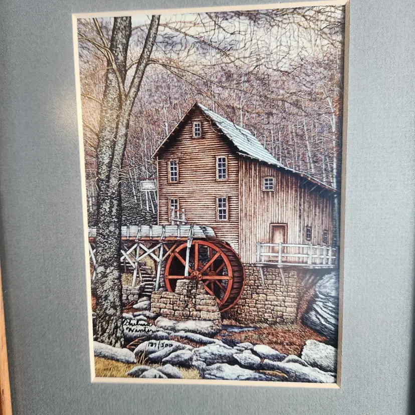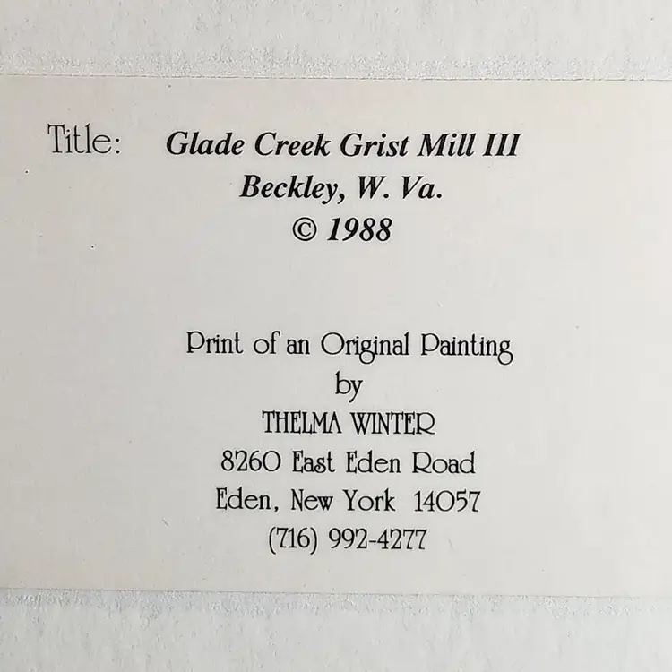 Glade Creek Grist Mill (West Virginia) 1988 Limited Edition #187/500 - features a grist mill in winter.