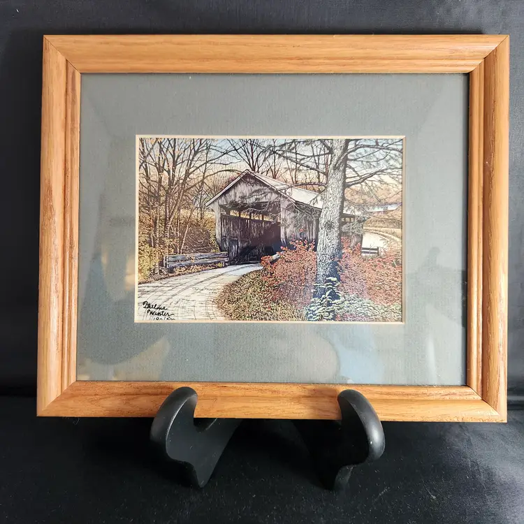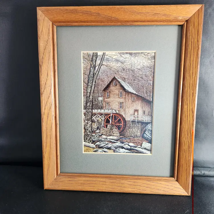 Condition*: Excellent vintage condition. I am not seeing any issues with the bridge frame. The mill print has a nick in the top edge of the frame which you do not see if it is hung, I feel it could be easily touched up if it bothers you, it wouldn't bother me. The mats are faded from a deeper olive green but I feel that the color might compliment the prints better than the original. See photos.