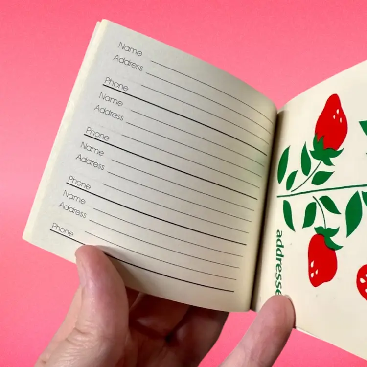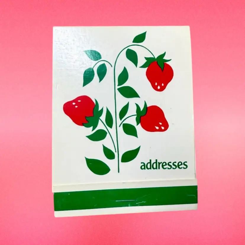 4.5”x3.5”. 1980. Small little matchbook style address book, cardboard cover. Unused!