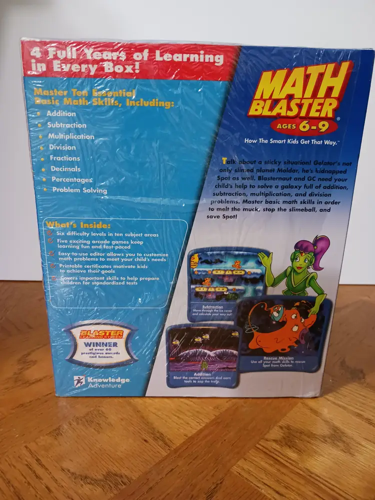 2002 Math Blaster for Windows 95/98 new in box. Plastic wrap has been cut but sticker seal still intact. SEE PICTURES FOR CONDITION