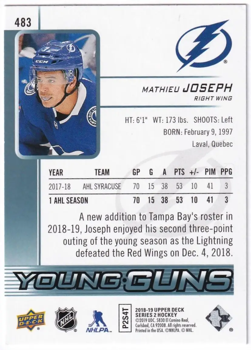 2018-19 Upper Deck #483 Mathieu Joseph YG RC Tampa Bay Lightning Young Guns