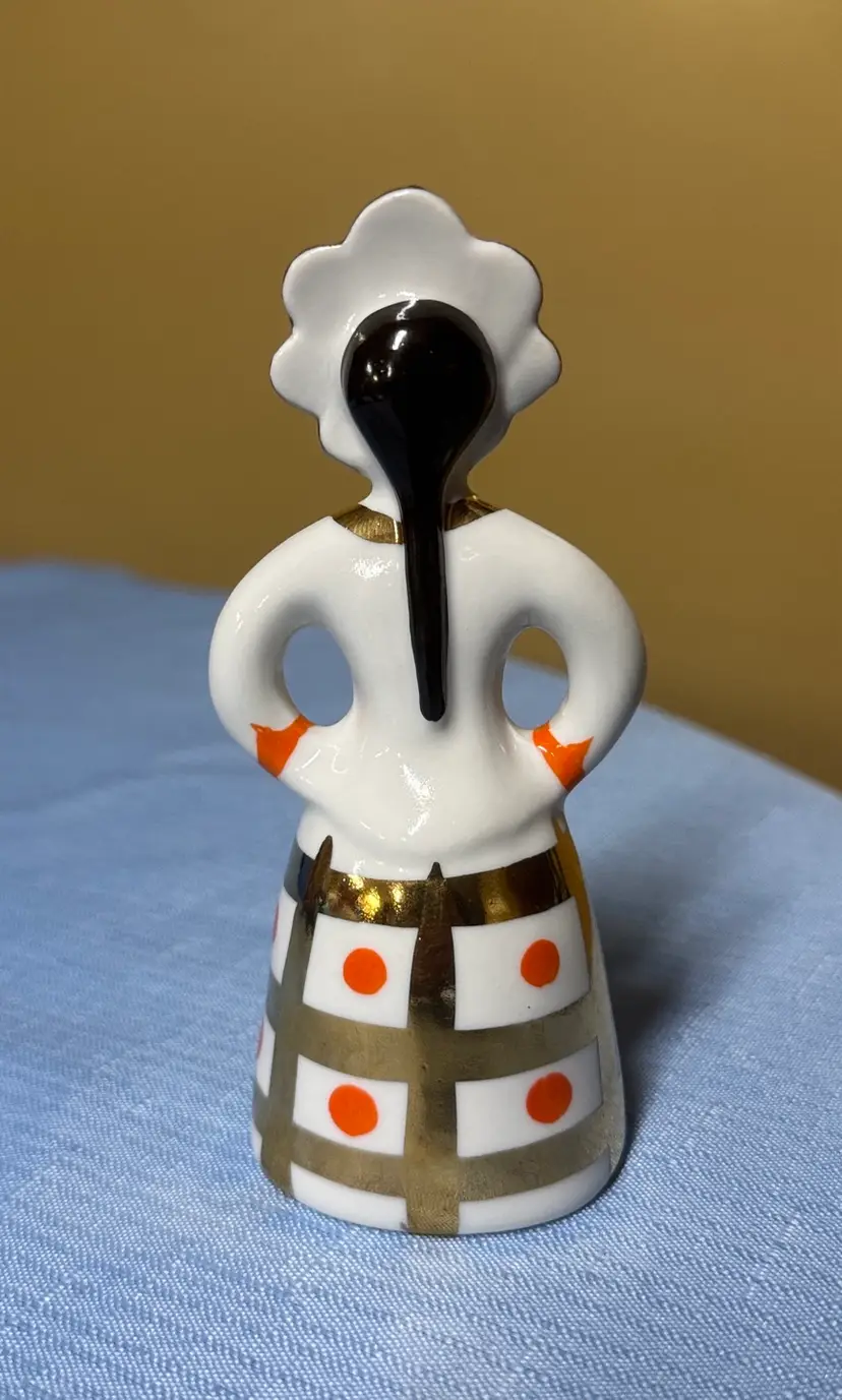 vintage Soviet-era porcelain figurine known as "Girl in a Kokoshnik" or "Matryoshka Bride". Origin: Produced by the Dulevo Porcelain Factory in the USSR. Design: Features hand-painted details with a signature gold trim and bright orange accents. Era: Typically manufactured during the 1960s to 1980s. 5” tall In excellent condition with no breaks or chips I have two of these figurines if you want both you can bundle them to pay less shipping. (400326265)