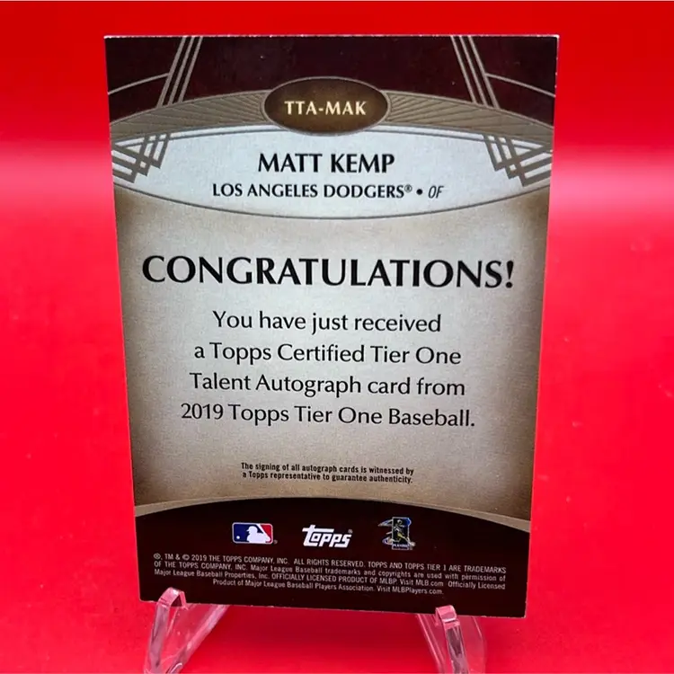 Matt Kemp 2019 Topps Tier Talent One Bronze Ink Auto 3/25 Los Angeles Dodgers