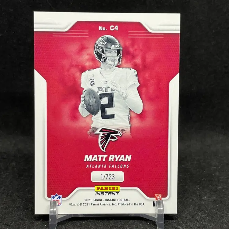 1st time buyer? Get $5 Off with code DISTRICT5 at checkout! Card as shown. All cards $20 and under ship PWE via lettertrackpro [https://www.letter-track.com/registerap.asp?AFID=8757] Set: 2021 Panini Instant Card Size: Standard Card Number: 4 Season: 2021 Card Condition: Mint Player/Athlete: Matt Ryan Type: Sports Trading Card Features: Captains, 1 of 723, Short Print Year Manufactured: 2021 Manufacturer: Panini Sport: Football Print Run: 723 Original/Licensed Reprint: Original Team: Atlanta Falcons, Boston College Eagles, Indianapolis Colts League: National Football League (NFL) Autographed: No