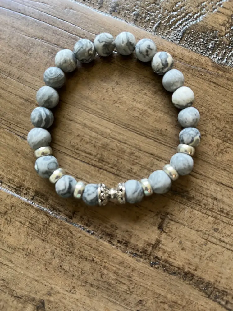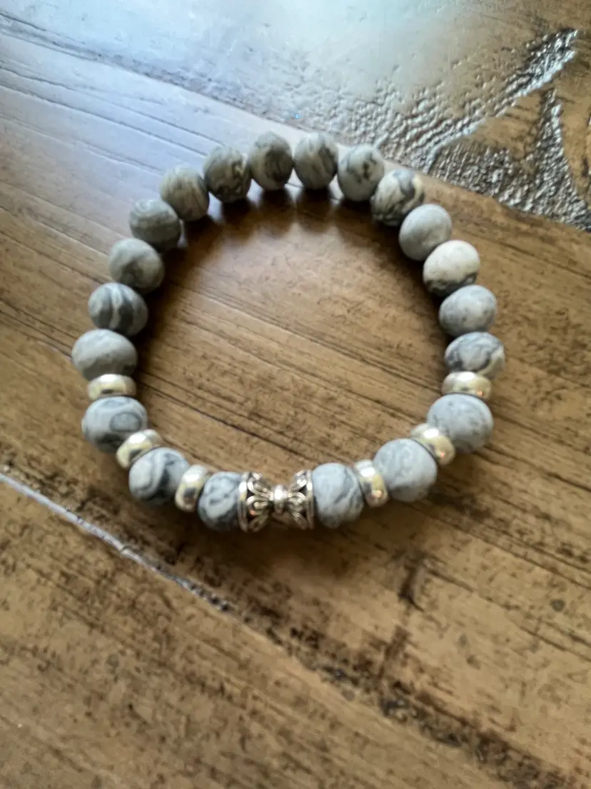Matte finish Howlite 8mm stretch bracelet with silverplated spacers. I will combine shipping.