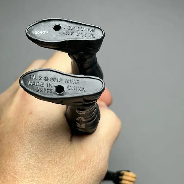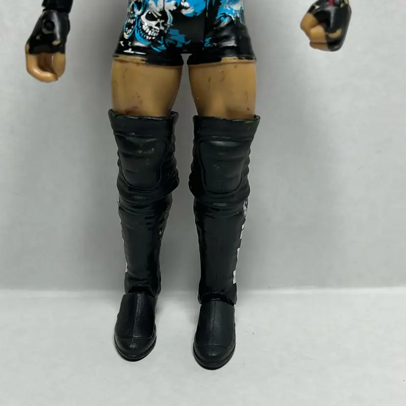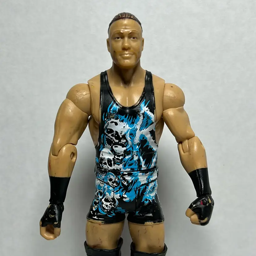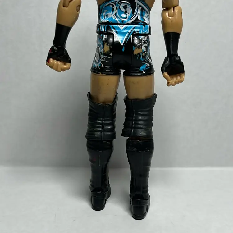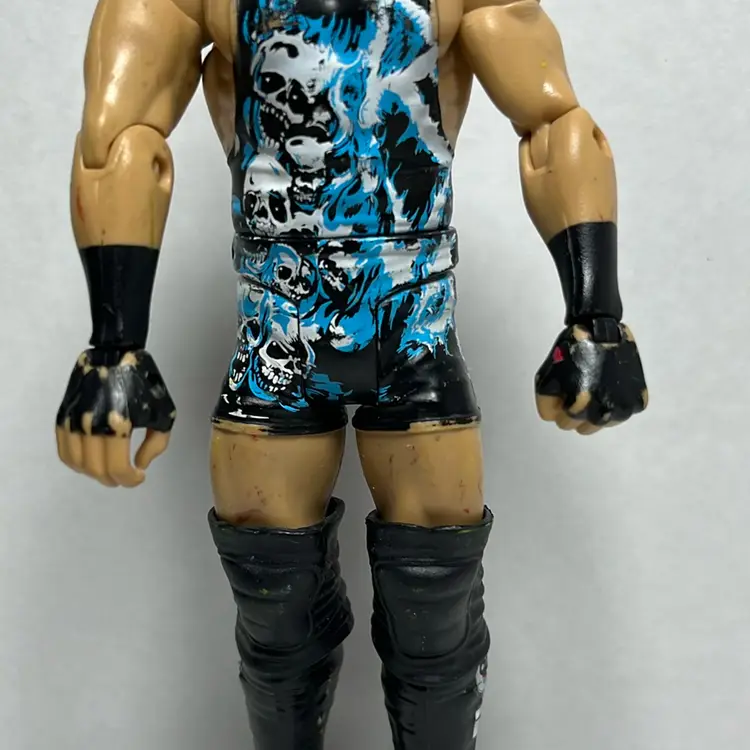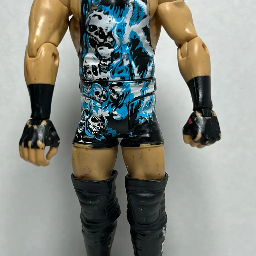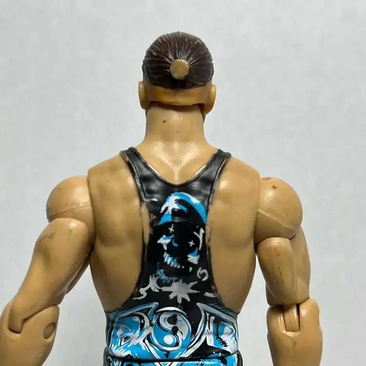 Figure stands and moves well, but has rubbed off paint, markings on him & his hair has been cut off