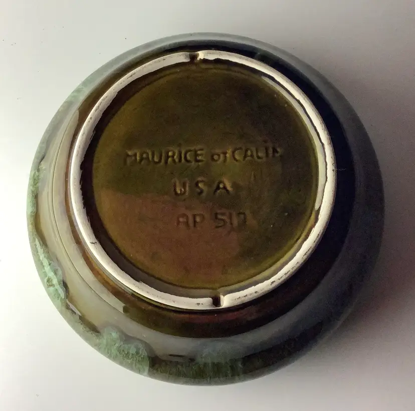 This bowl is in very good condition and is incised on the bottom (See photos). Measures 7” x 3.5” … 5.5” with lid on. I ship 3 day UPS and bubble wrap and pack very carefully for safe transit. Thank you!