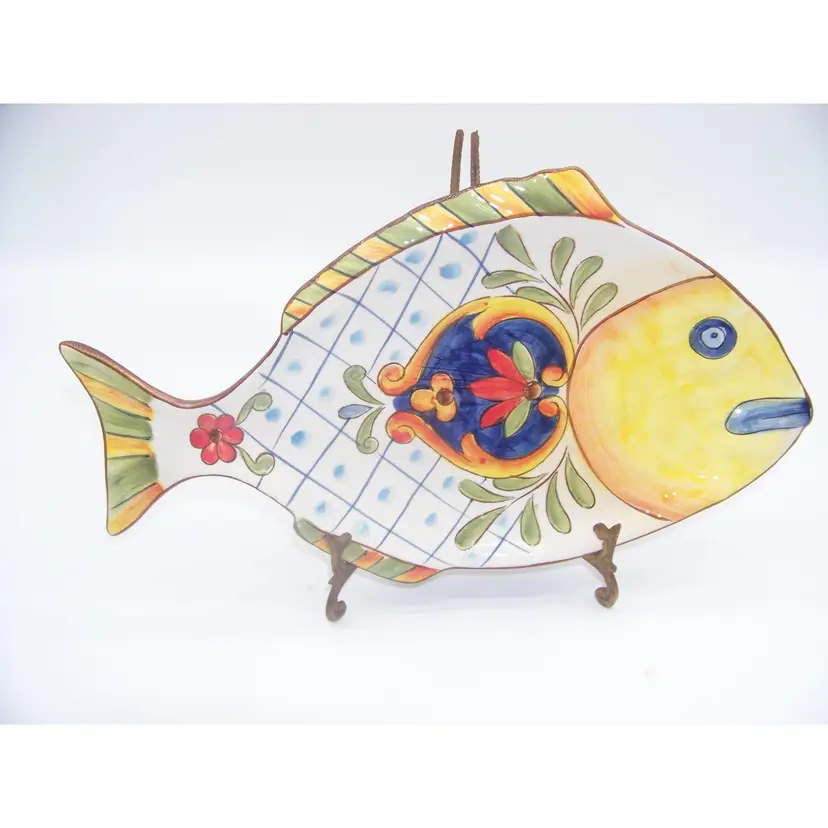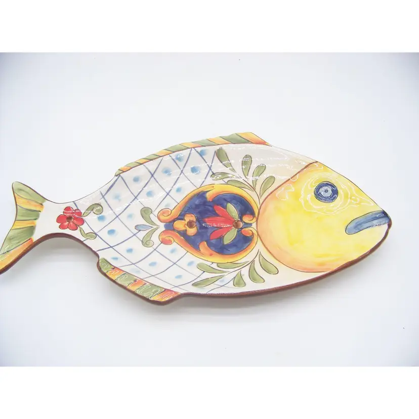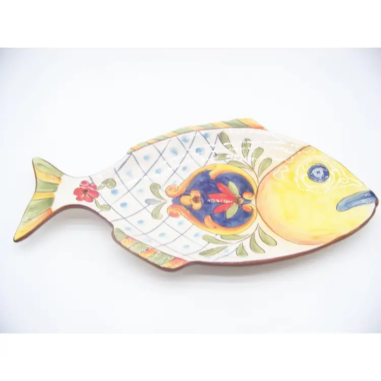 Maxcera Tuscan style hand painted fish platter, made in China. Very whimsical fish plater that is 13.5" long and 7.25" wide. No chips or cracks.