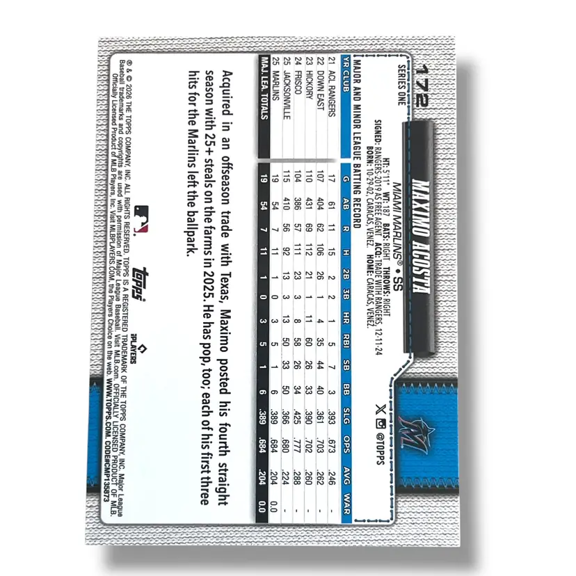 Here We Have a Maximo Acosta RC SP 2026 Topps Holiday Polka Dots Purple Blue #172