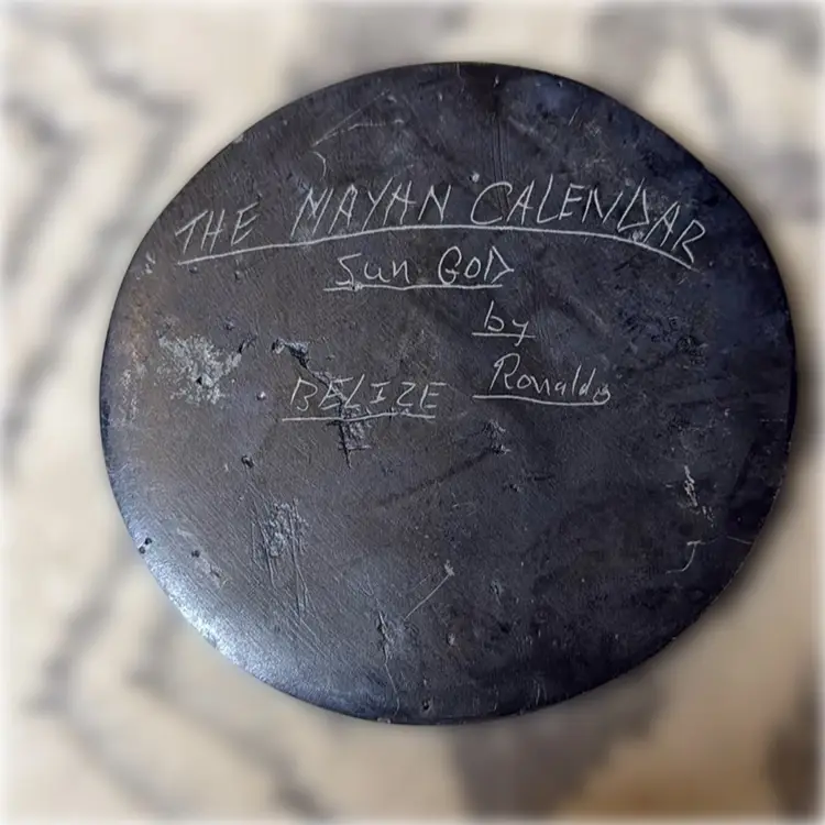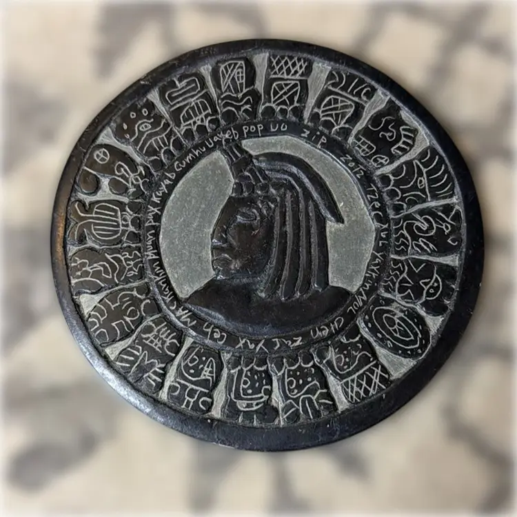 Mayan Calendar by Ronaldo Art Carving on Slate - 4.5” in diameter.
