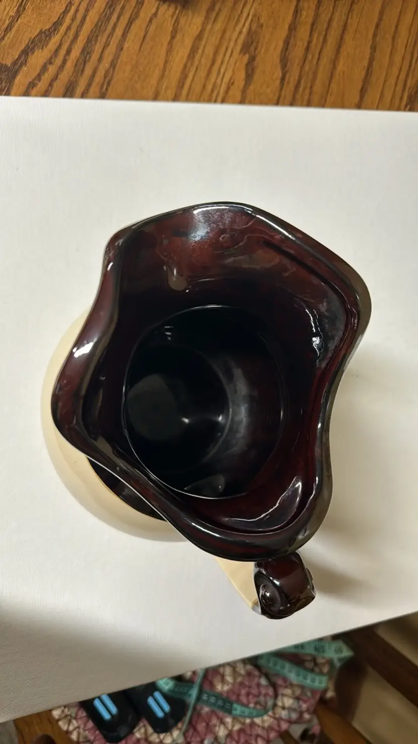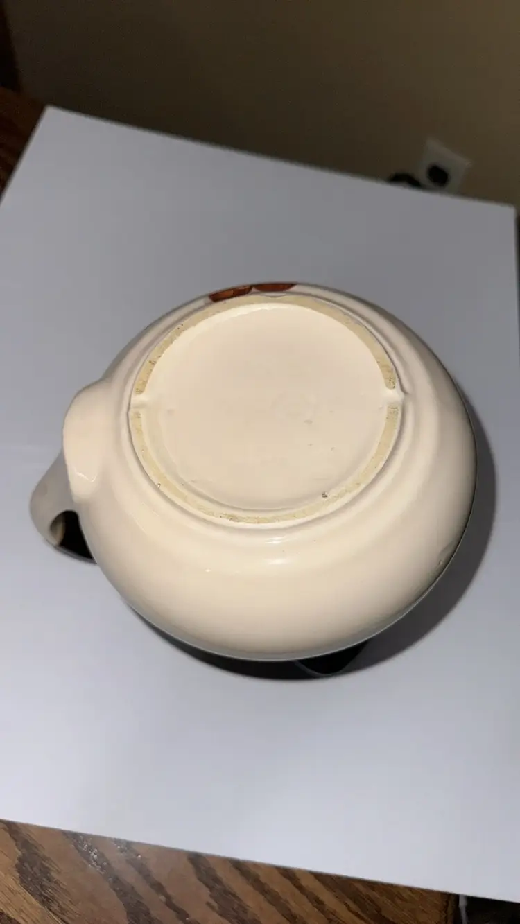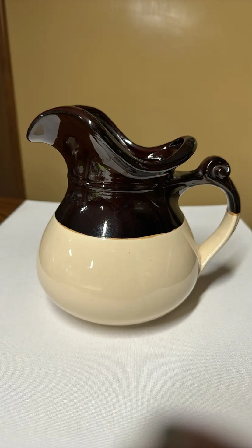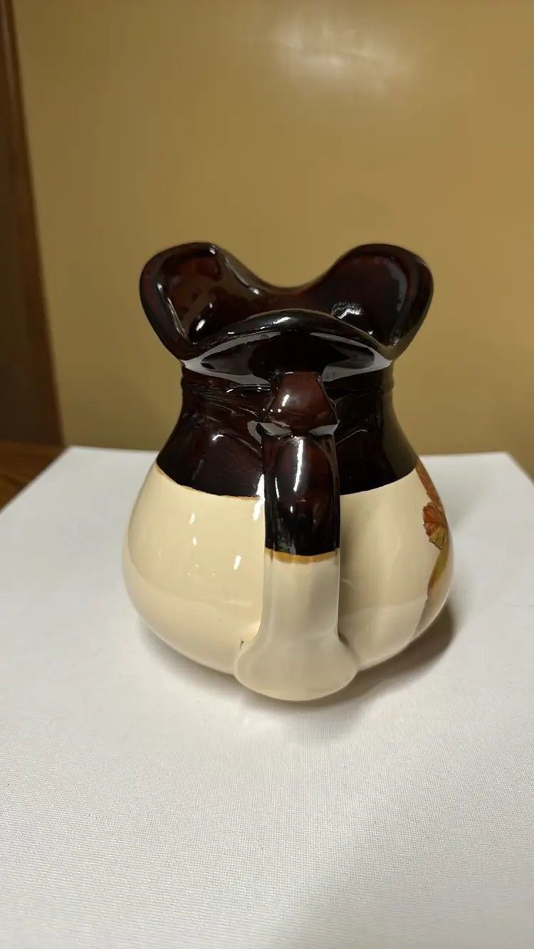 Vintage McCoy 7515 Pitcher Pottery White and Brown, Apricots & Hazelnuts 7.5” tall Excellent condition with no breaks or chips (1789242)