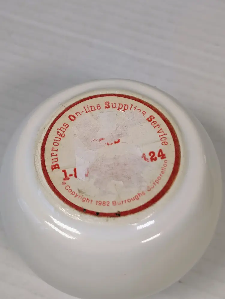 This is an advertising paperweight from the Burroughs corporation. It's a McCoy Pac-Man B.O.S.S advertising paperweight. It measures approximately 2 and 1/2 in tall and 3 in wide
