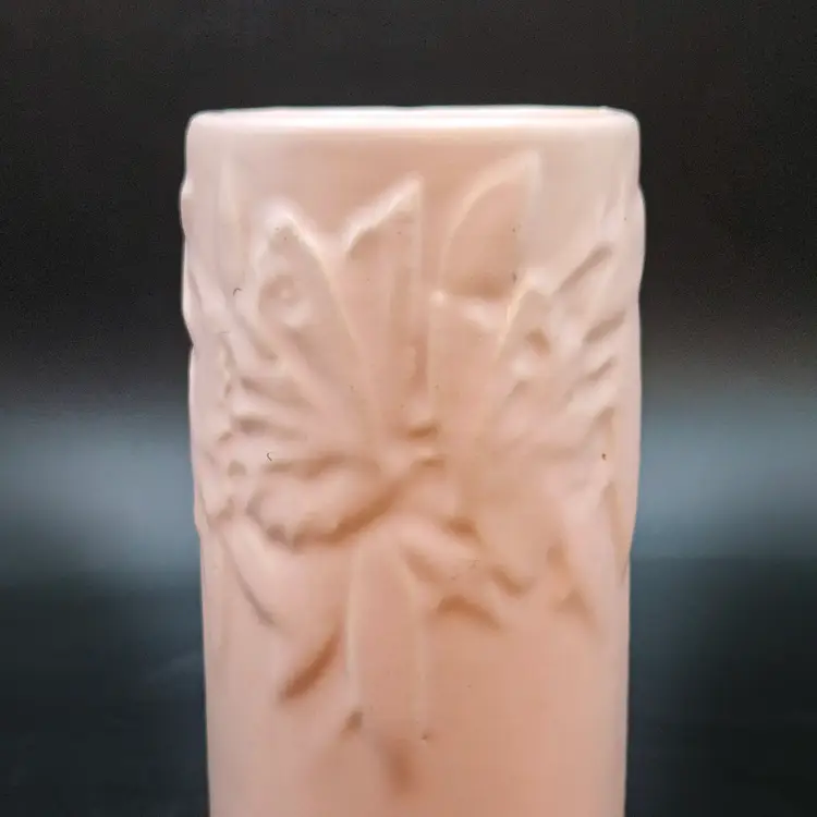 McCoy Pottery Butterfly Vase Pink Matte Cylinder 1940s Vintage