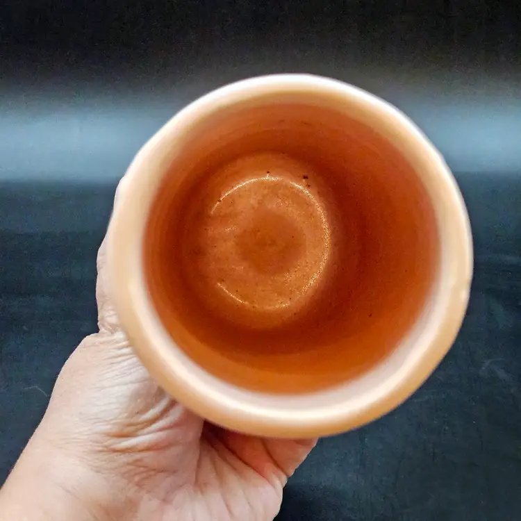 Measures approx. 6.25” tall Good pre-owned vintage condition. There are some miss glaze spots and crazing. Pits and scuffs consistent with age. No chips or cracks. Please see pictures for more details.