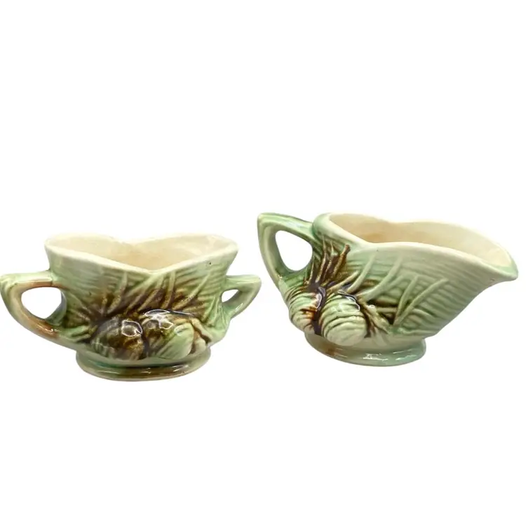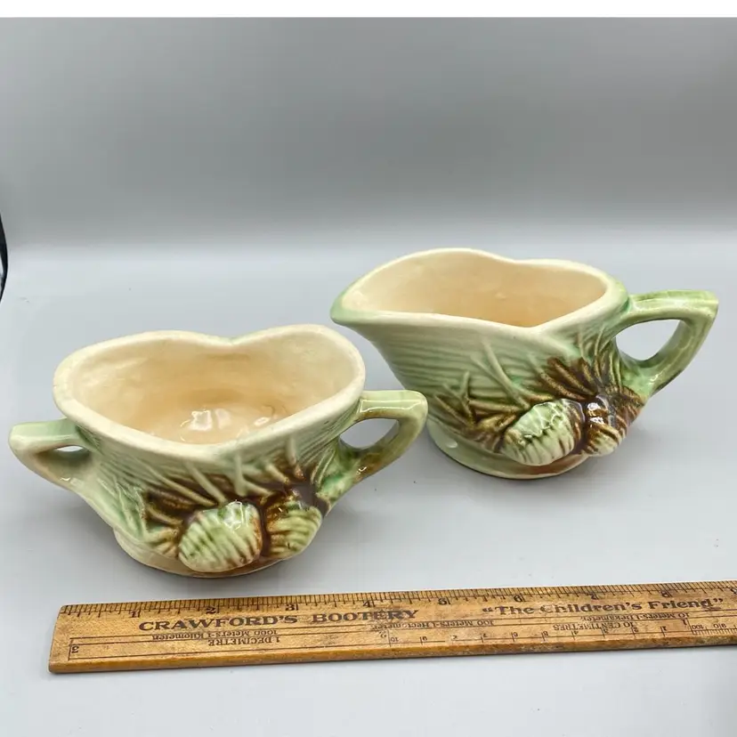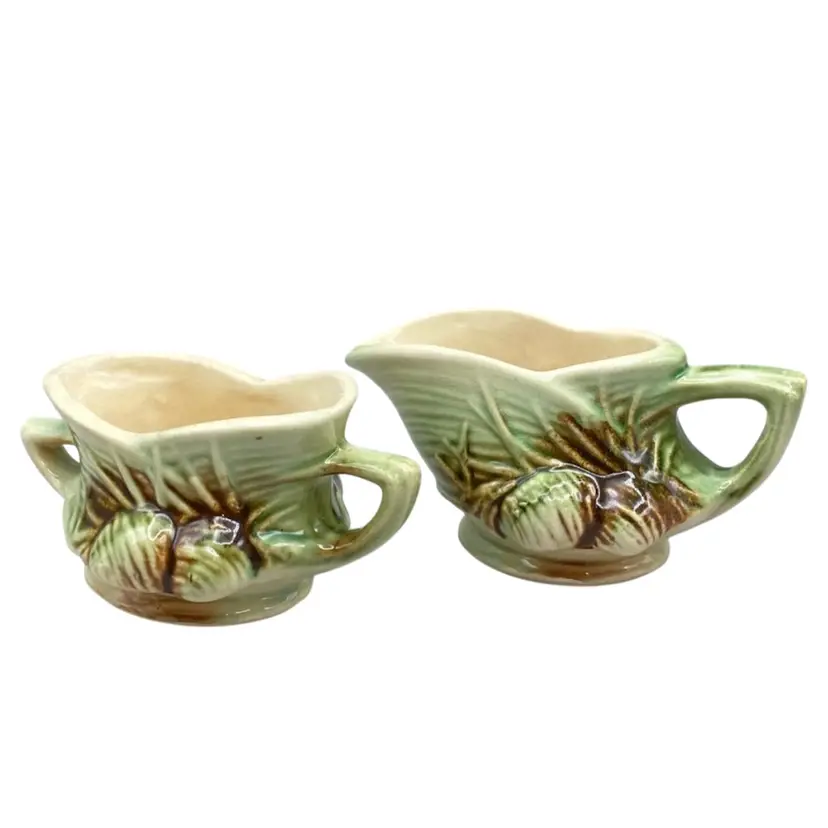 McCoy Pottery Sugar & Creamer Pine Cone Rustic Vintage CottageCore