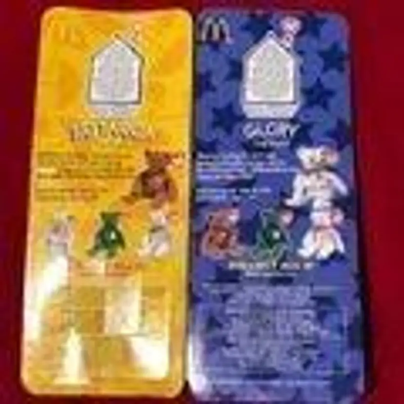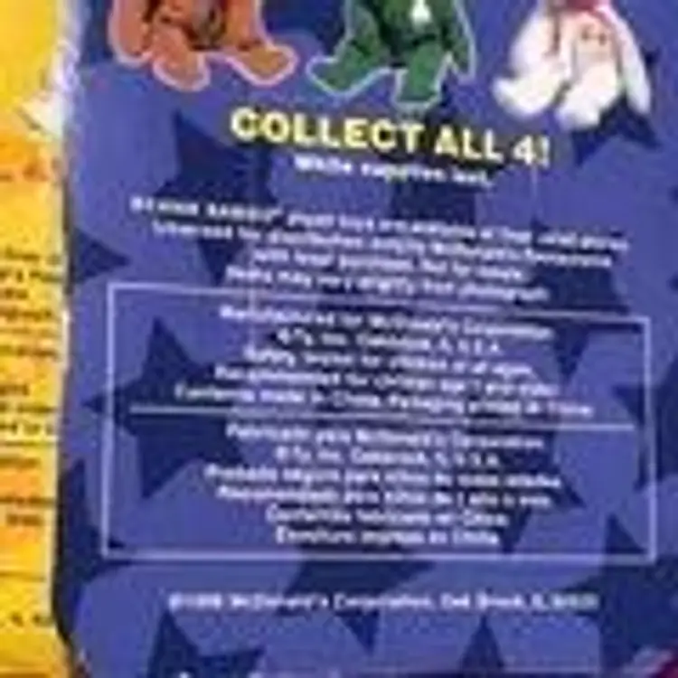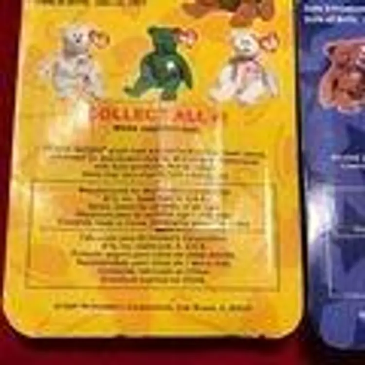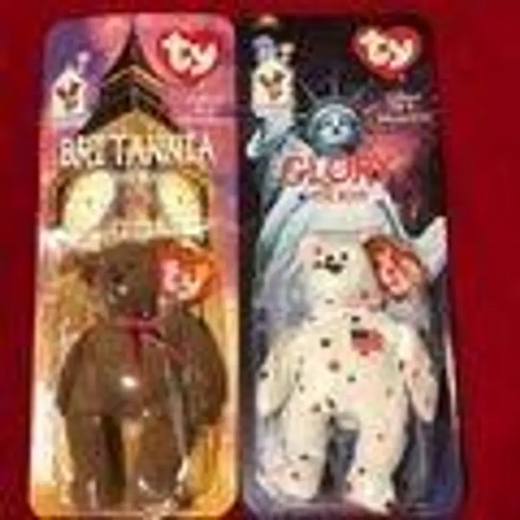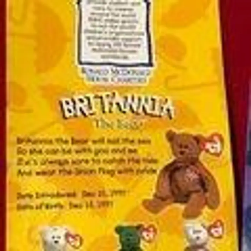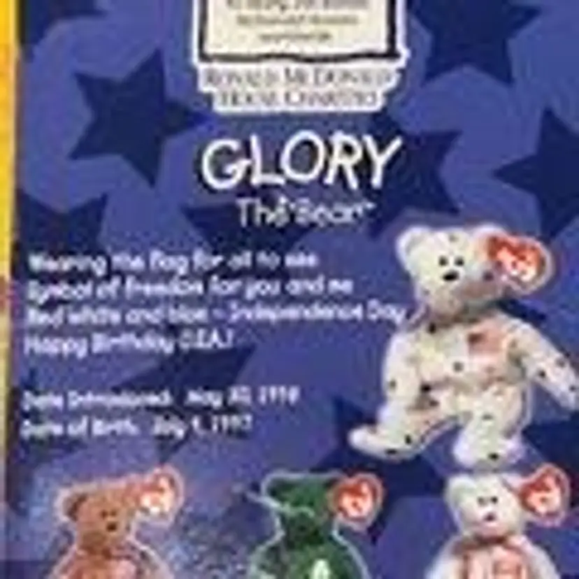 McDonald's Ty Teenie Beanie Babies Britannia & Glory Bears 5.5 " Tall Still in Boxes; Never Played With; Britannia The Bear was Introduced 12/31/1997 Born 12/15/1997; Glory The Bear was Introduced 5/30/1998 Born 7/4/1997; Pre-owned; Like New Condition, No stains, Rips or Tears. Ear Hang Tags Attached; See all photos for condition & descriptions, Ships Quickly, Monday - Friday (Except National Holidays)