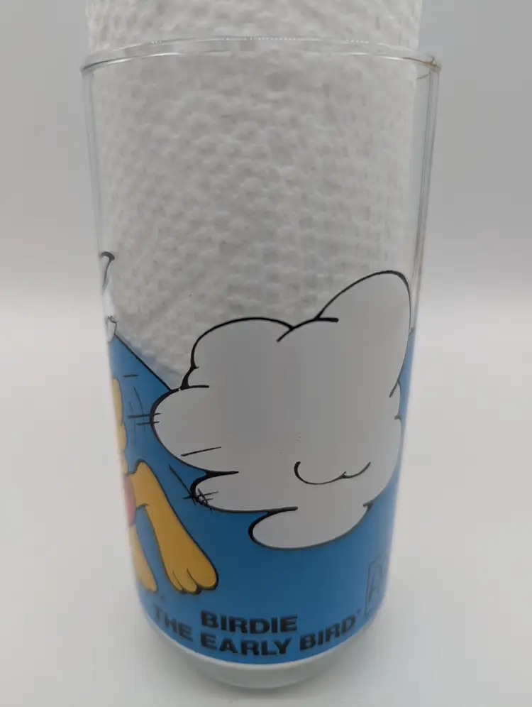 This delightful McDonald's Glass featuring Birdie from the fabulous 1980s! This charming collectible, affectionately known as "The Early Bird," is a whimsical nod to the iconic charm of the fast-food giant. With a playful design and vibrant colours, this glass brings a smile to your face, just like that first bite of a crispy hash brown in the morning!