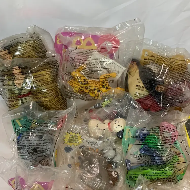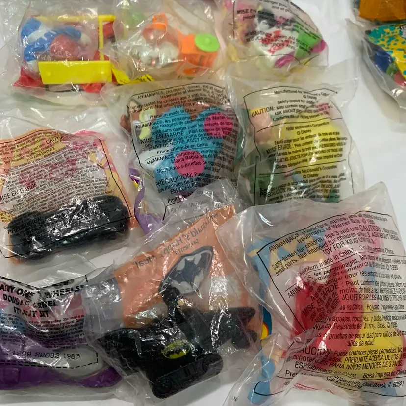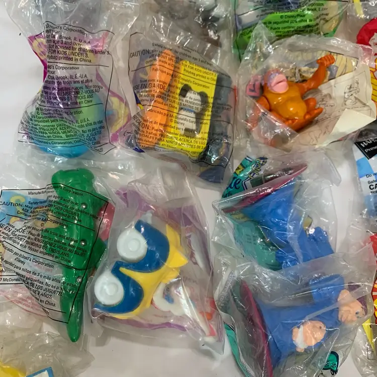 Lot of 50 pieces McDonald’s Happy Meal Toys. Most are vintage ranging from 1980s to early 2000s. A few are past 2010. A few pieces are loose. Please see photos.