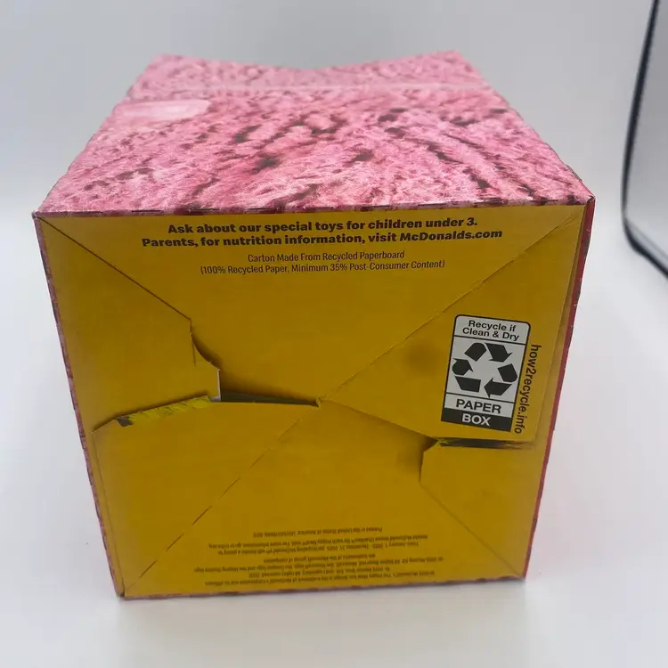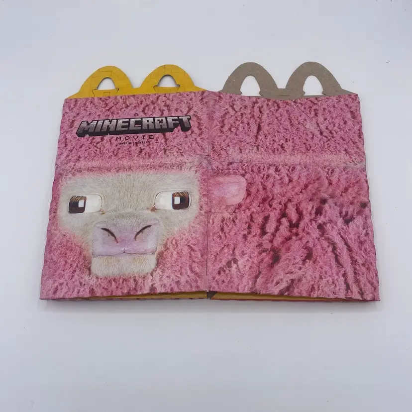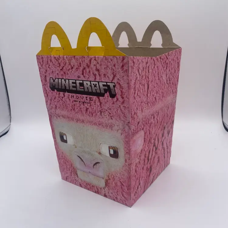 This is an empty box from McDonald's Happy Meals 2025, featuring the popular Minecraft game. The box showcases the Bee & Sheep characters from the game and bears the McDonald's brand name. It was manufactured in China and is part of the Fast Food & Cereal Premiums category under Toys & Hobbies.