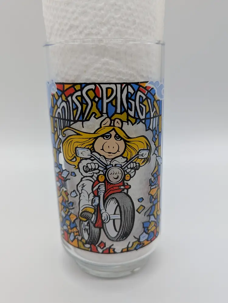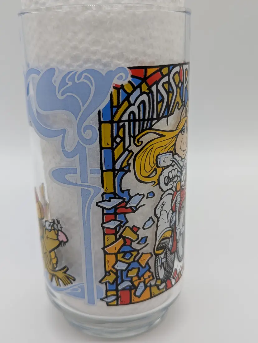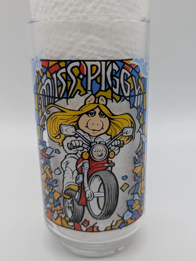 Step right up and take a trip down memory lane with this delightful McDonald's 1981 commemorative glass featuring none other than the fabulous Miss Piggy from The Great Muppet Caper! This vibrant glass, illustrated by the talented Daryl Cagle, is a true treasure for collectors and fans of the iconic Muppets.