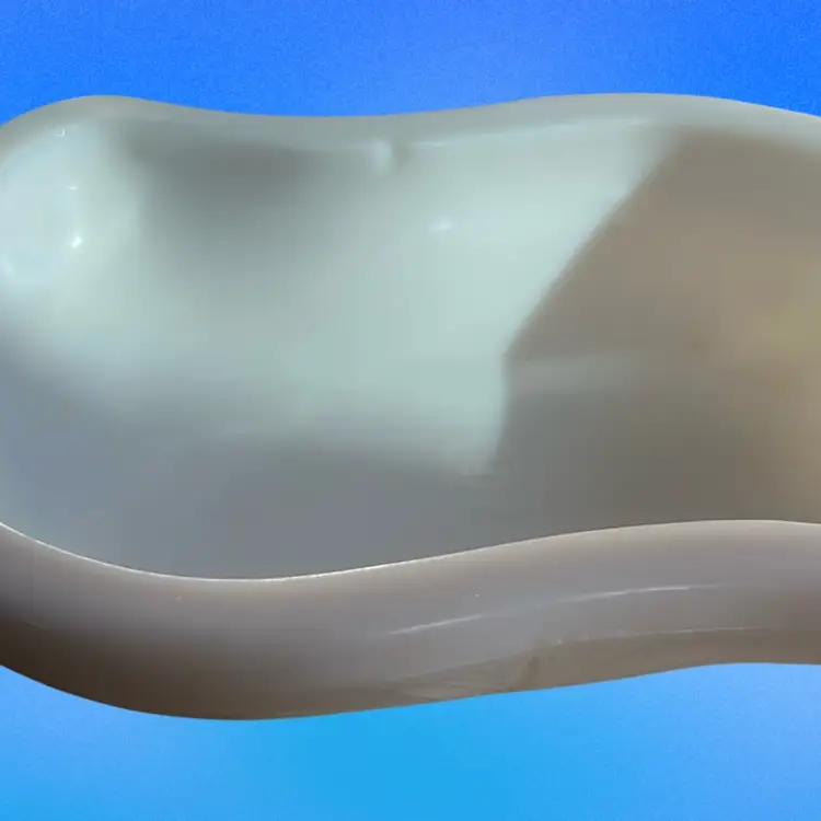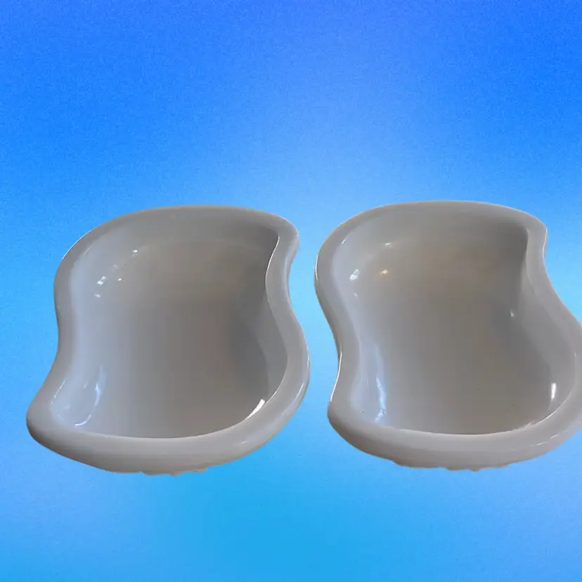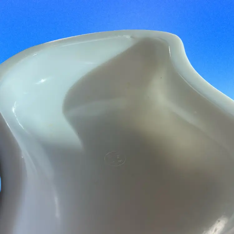 This pair of uniquely shaped relish/ trinket dishes are made by the McKee Glass Company in the 1940s. Each measures approximately 8.25in L x 4in W x 1in D and is produced from milk glass in the Toltec pattern. These dishes are perfect for serving snacks or as decorative pieces. They each dish has minor chips along the inside rim which would be expected for its age.