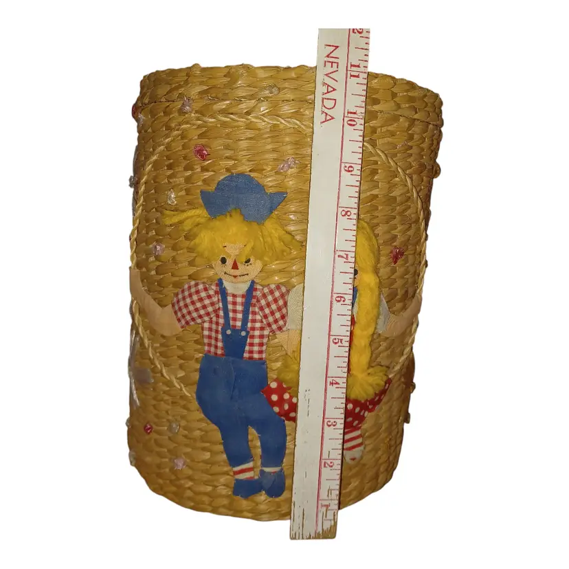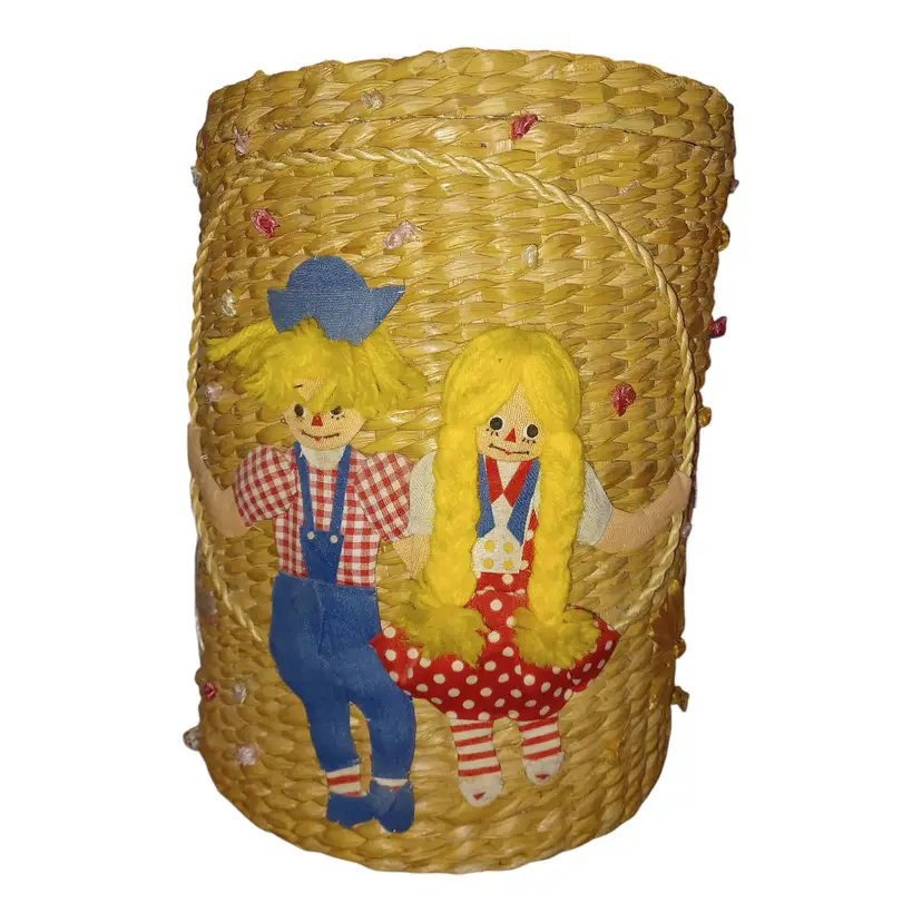 MCM 60’s Child’s Nursery Handcrafted Waste Basket- woven straw Raggedy Ann Andy