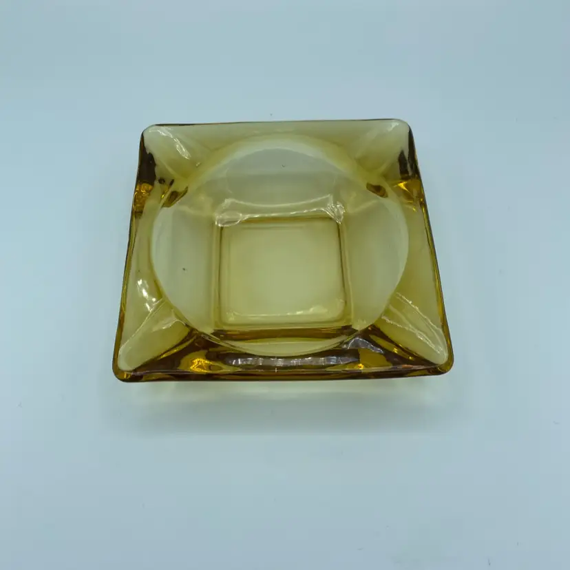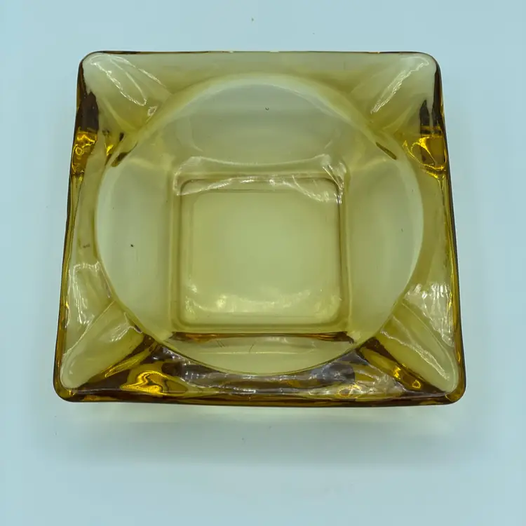 MCM Amber Glass Ashtray. Square Shape. No Chips/Cracks. 4/ 1/2" *