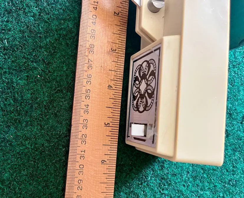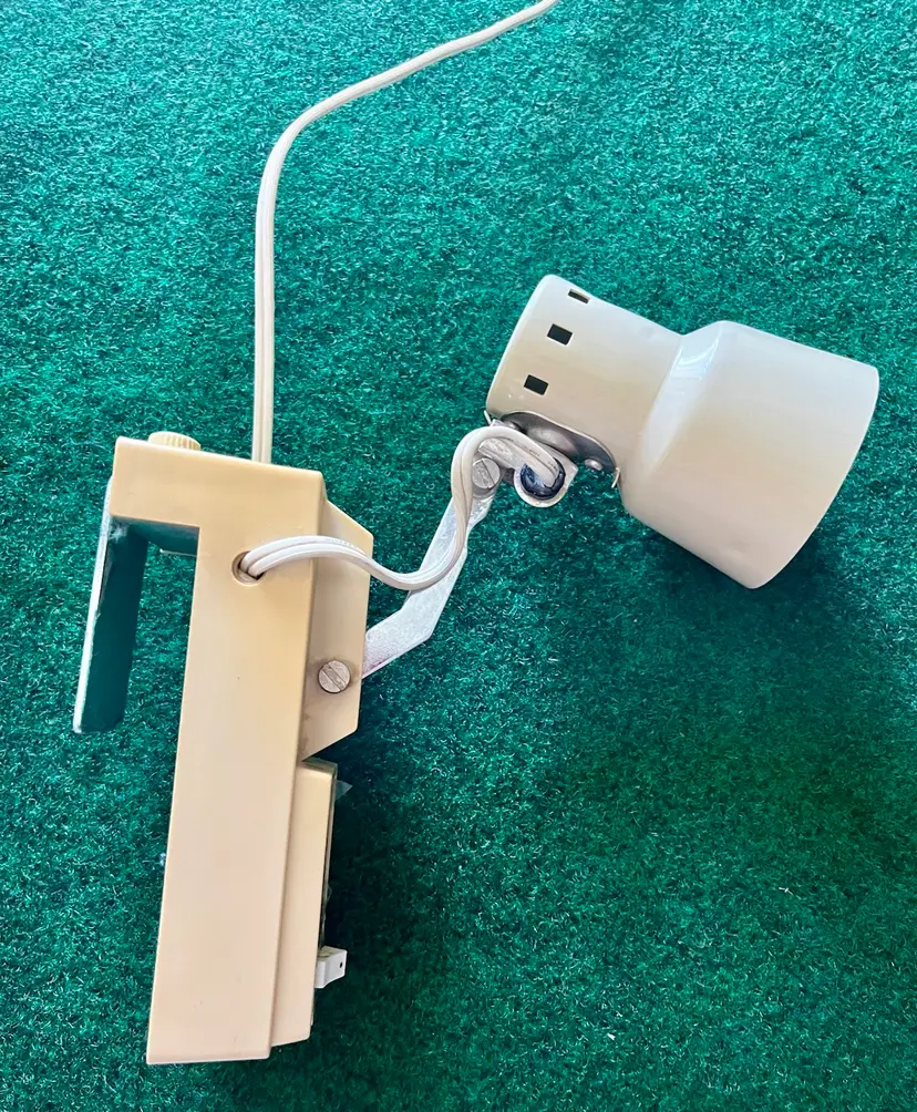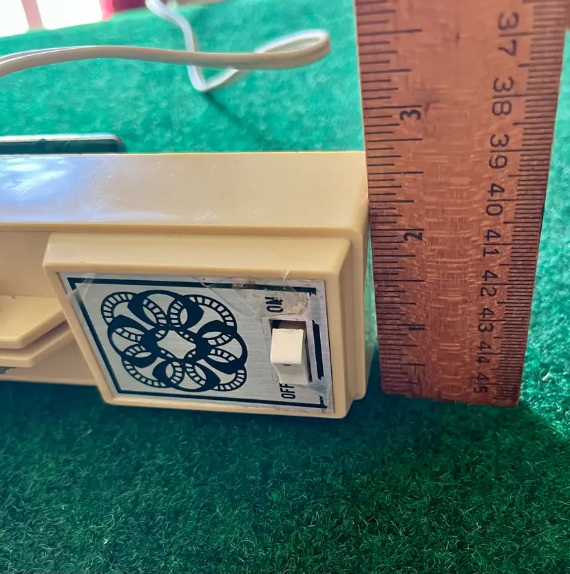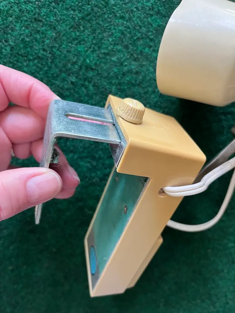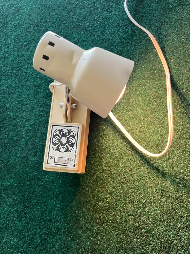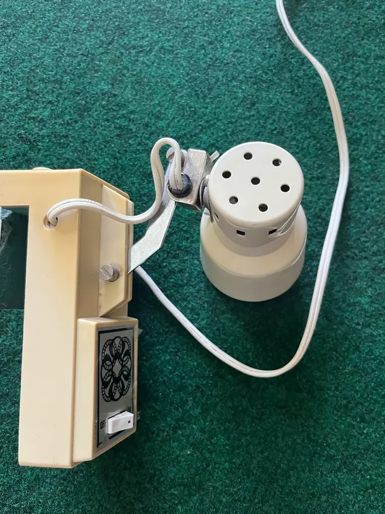 Please look at all the photos prior to deciding to make a purchase. This is a pre-owned item with age “yellowing” to the almond color on the plastic, dents in the lamp head, cover shows some wear indicative to its age, and tarnish on the metal. Buyer is strongly encouraged to review the photos decide for themselves its condition as my interpretation may not align with yours. Prior to a purchase, questions not answered in photos, details, description are welcome.