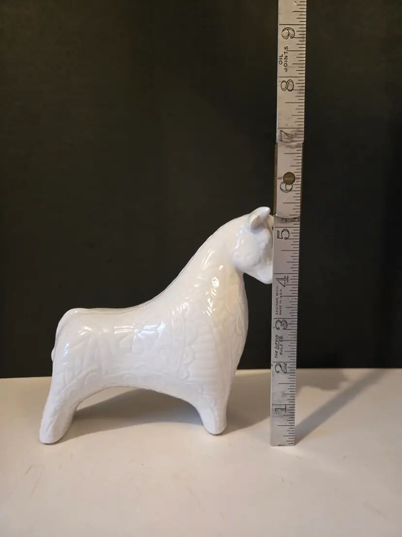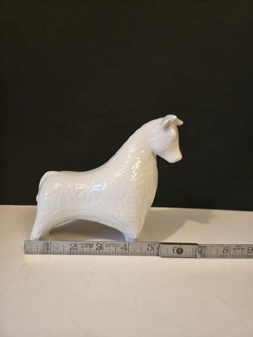 This wonderful little ceramic bull figure measures approximately 6.5×5.5×2.75 inches and is signed and dated on the bottom.