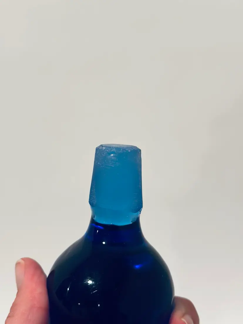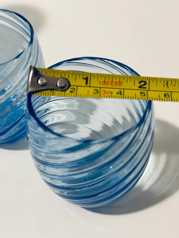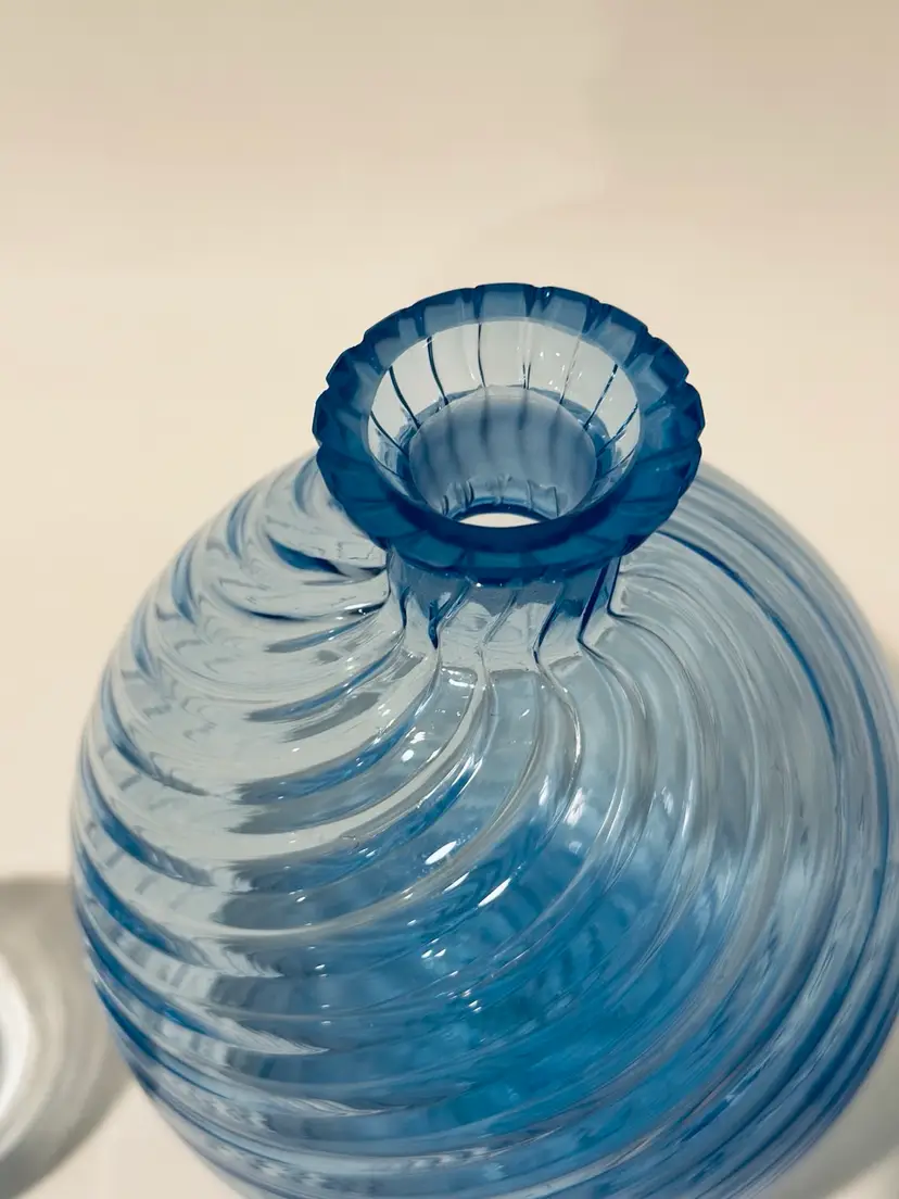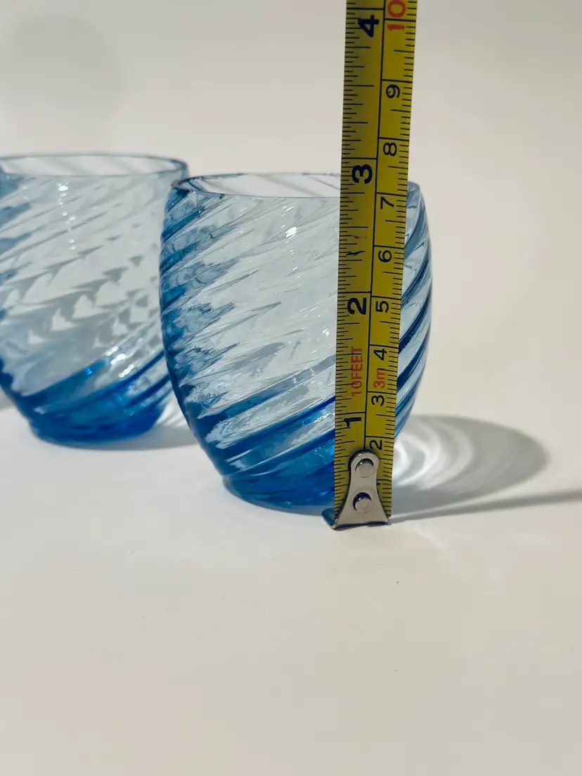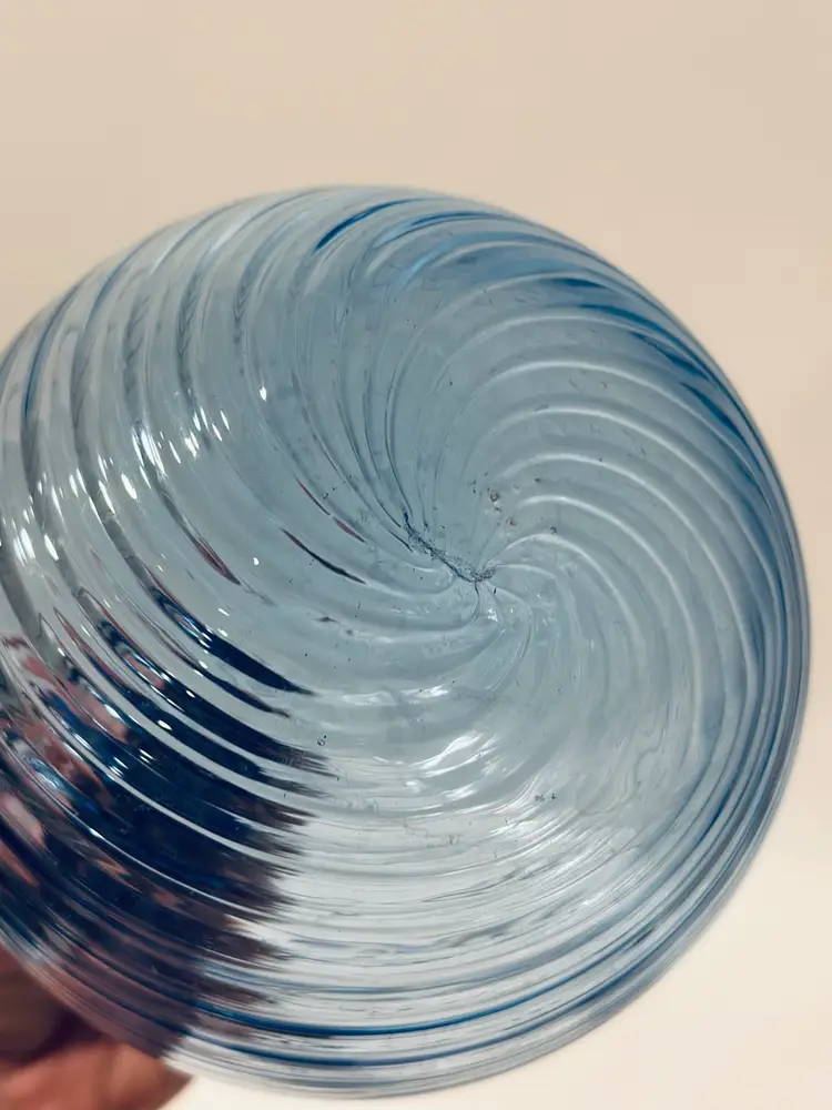 This beautiful set includes a blue handblown swirled decanter and five cordial glasses, all made in Czechoslovakia. The pieces feature a glossy finish, adding to their unique charm. The set is perfect for a mid-century modern style bar and is sure to impress guests.
