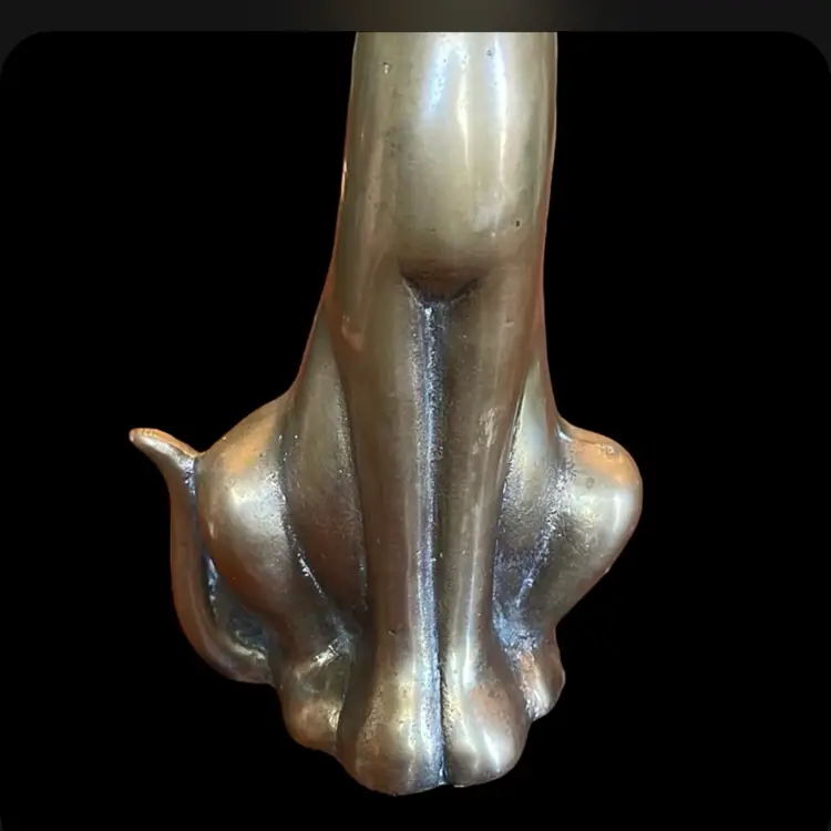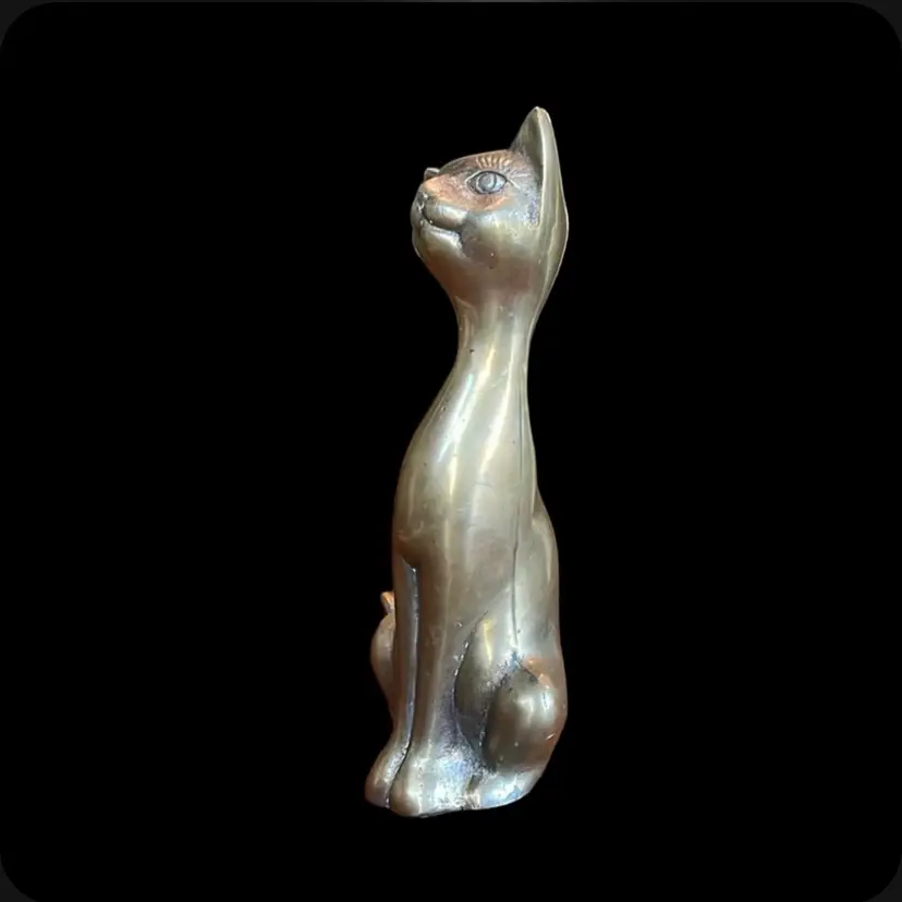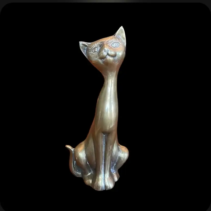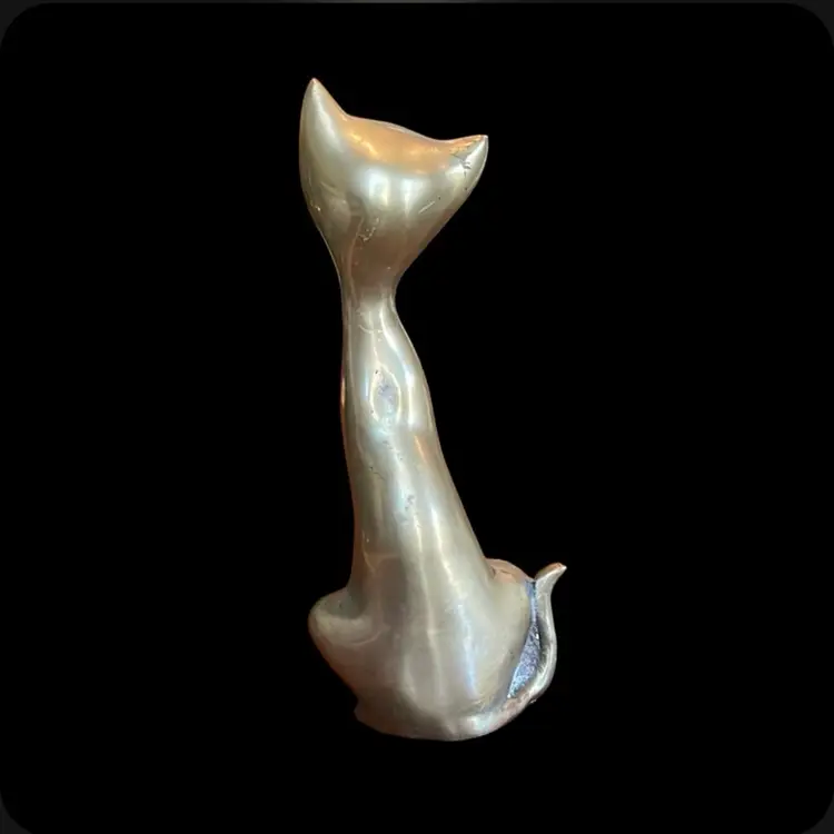 This is a mid century modern brass long necked cat figurine. Measures approximately 7.25" tall. No major flaws.