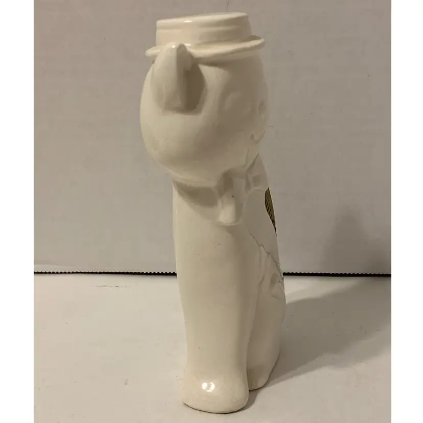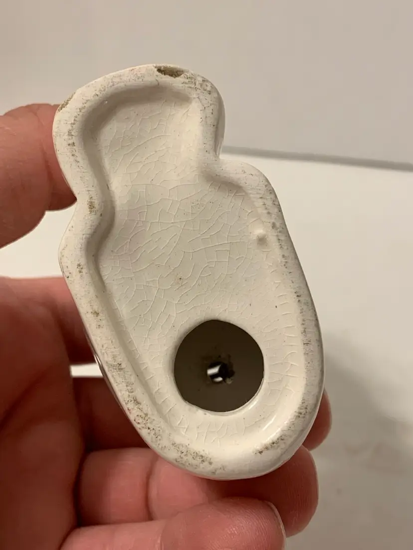 6” tall. In good shape. There is some crazing and a couple minor glaze defects