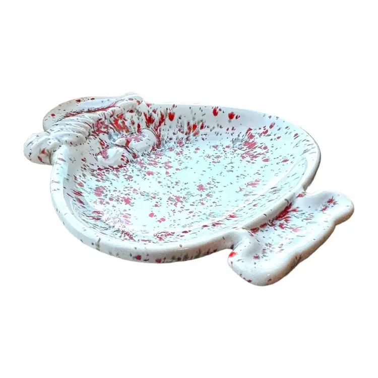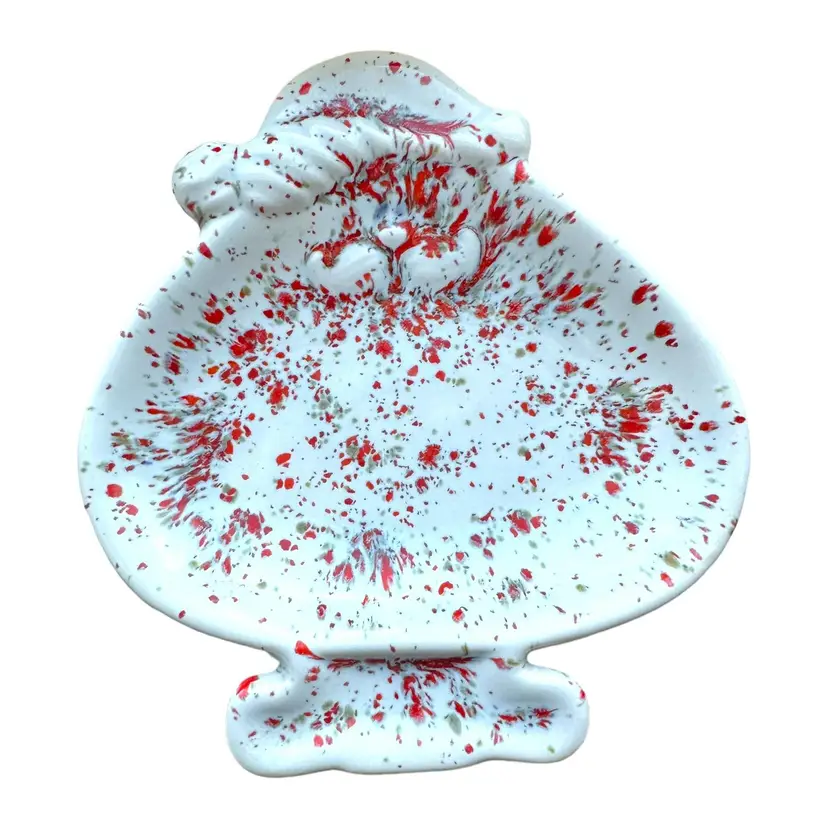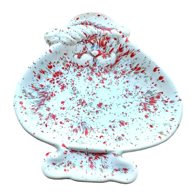 This charming little nut dish is the perfect addition to your holiday collectibles. Crafted from ceramic with a festive drip glaze and splatter paint design, it features a playful touch of whimsy that will bring a smile to anyone's face. Ideal for serving treats or displaying as a decorative accent, this Christmas Santa trinket nut dish is a must-have for any collector or lover of all things holiday.