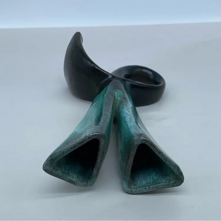 7 x 4 inches No chips or cracks Possibly Blue Mountain Pottery but no markings. Mid-century modern ceramics emerged as a significant design movement in the post-World War II era, characterized by clean lines, organic shapes, and innovative use of materials. This period saw a departure from traditional decorative styles, embracing simplicity and functionality in everyday objects. The movement was heavily influenced by the Bauhaus school and Scandinavian design principles, emphasizing the integration of art and industry.