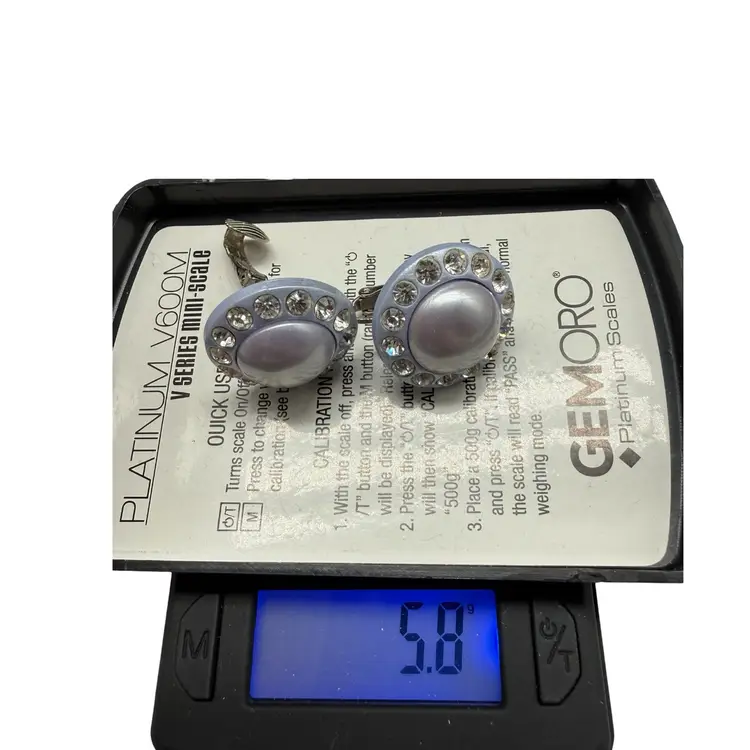 Condition- Preowned - Fair - one of the rhinestones has chipped off on one earring and the metal has a lot of wear. There are some scratches and wear to plastic fronts as well.