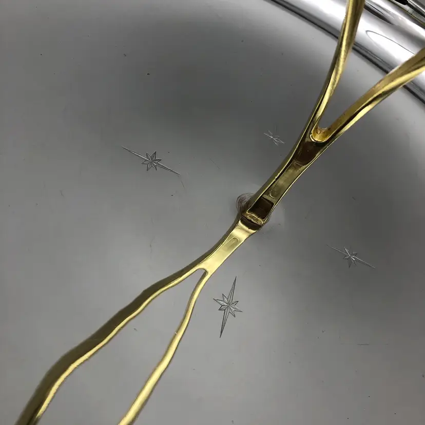 Approximately 11"H with a 13" diameter. Atomic starburst tray has some minor scratches, as pictured.