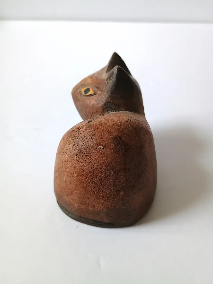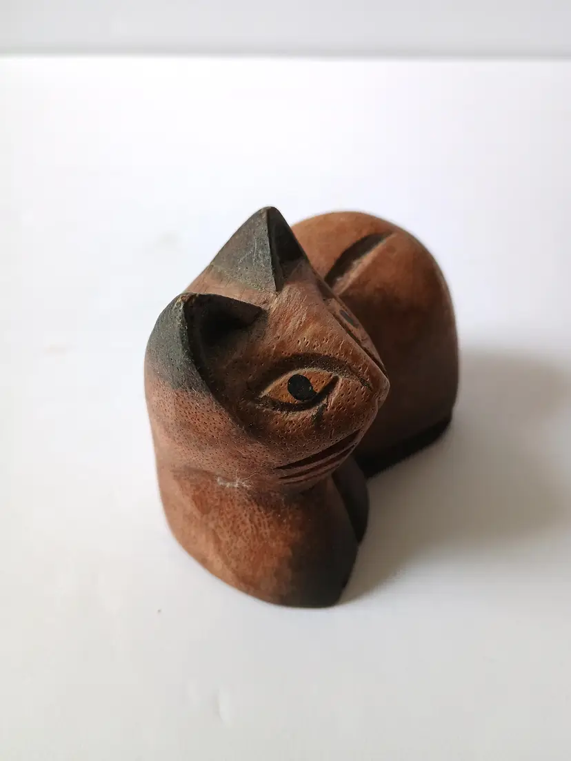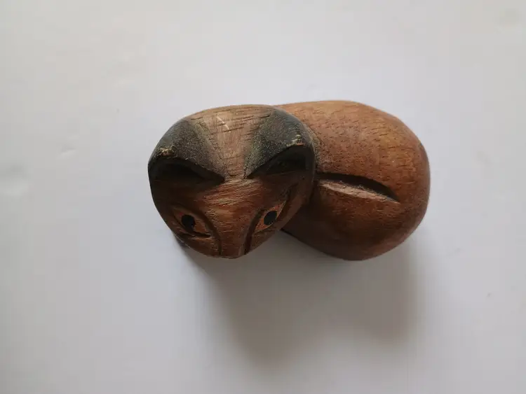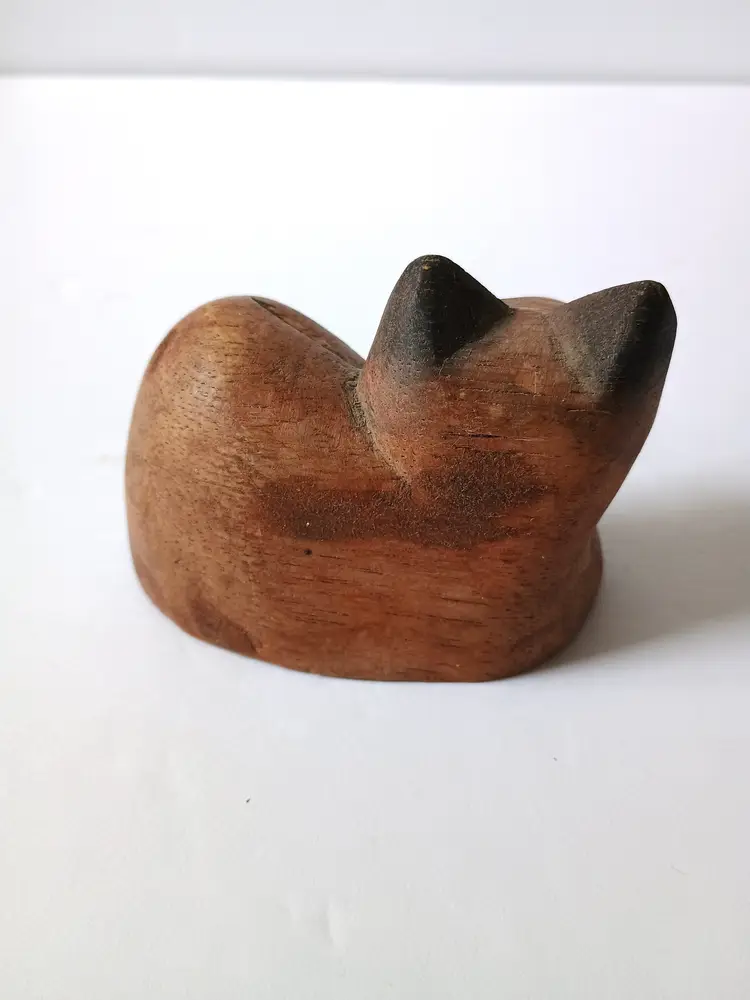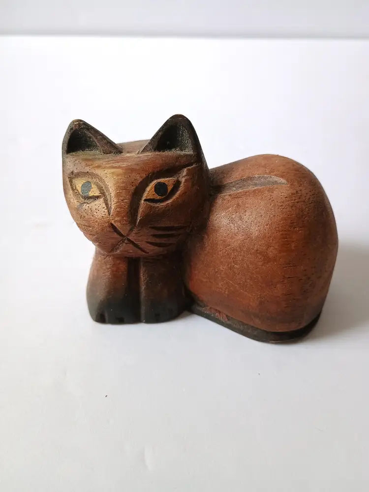 This little wooden cat measures approx 3.5 across. He has a couple of small water spots on him. Please take a look at all photos before buying. Thank you.