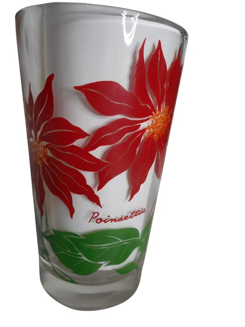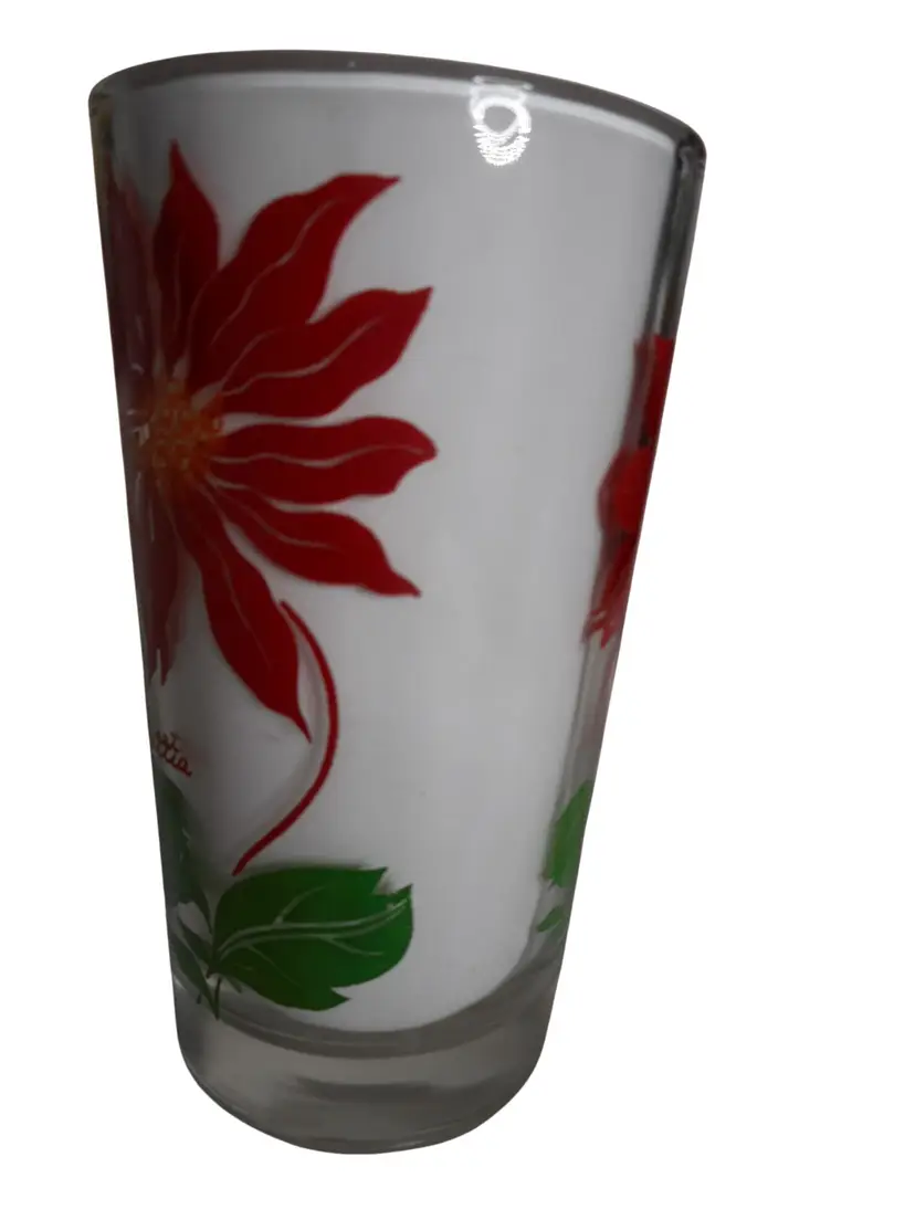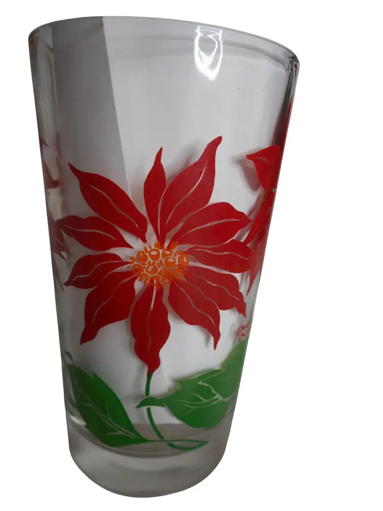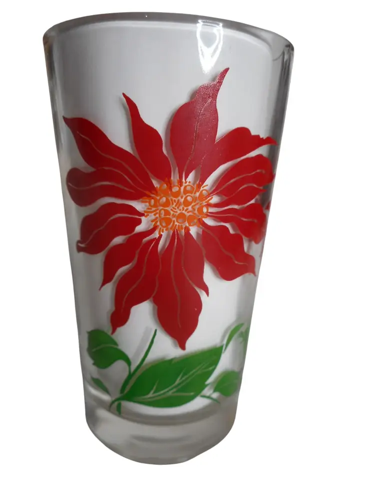 MCM Peanut Butter Drinking Juice Glass Tumbler Dark Red Poinsettia Flowers