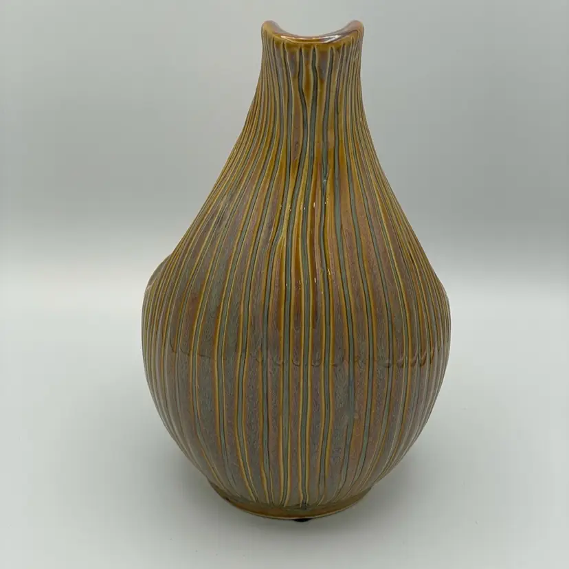 MCM Hosley Pottery "Not For Food Use". Olive Green With Blue/Gray. No Chips/Cracks. 8 1/2" H X 5" W * *
