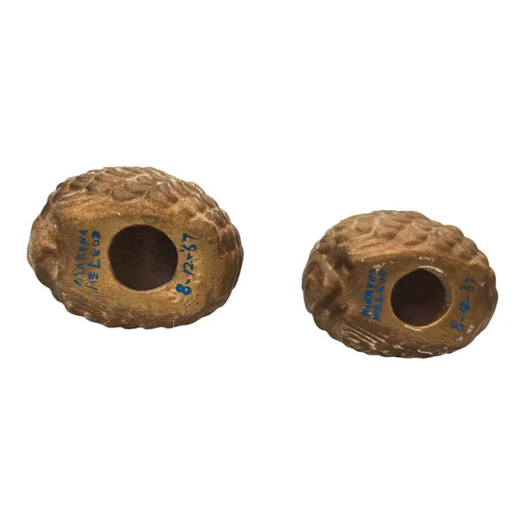 2.5 x 2.25 in. Lightweight. Some paint loss adds to the rustic feel. Signed and dated 1967.