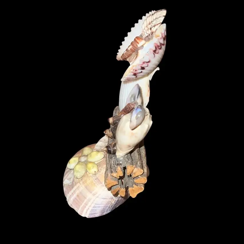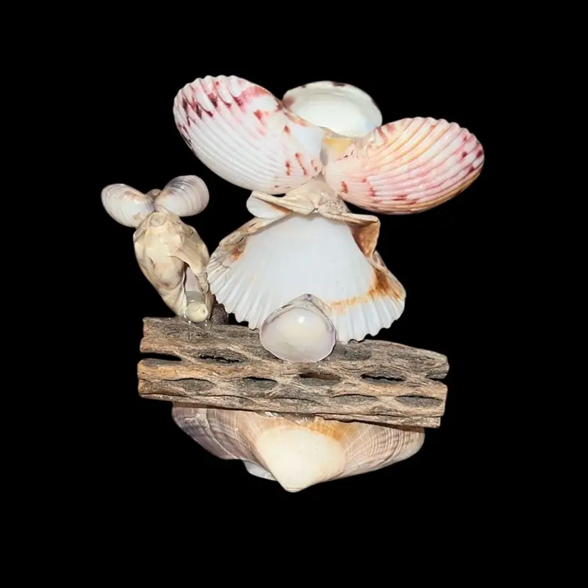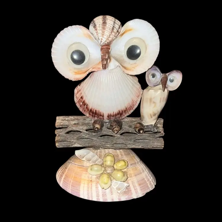 some writing on the bottom. Slightly fragile the little owl moves around just a little bit, but is held on by glue gun glue. There is vintage wear. 5 1/2 inches tall. In overall really great mid-century condition.