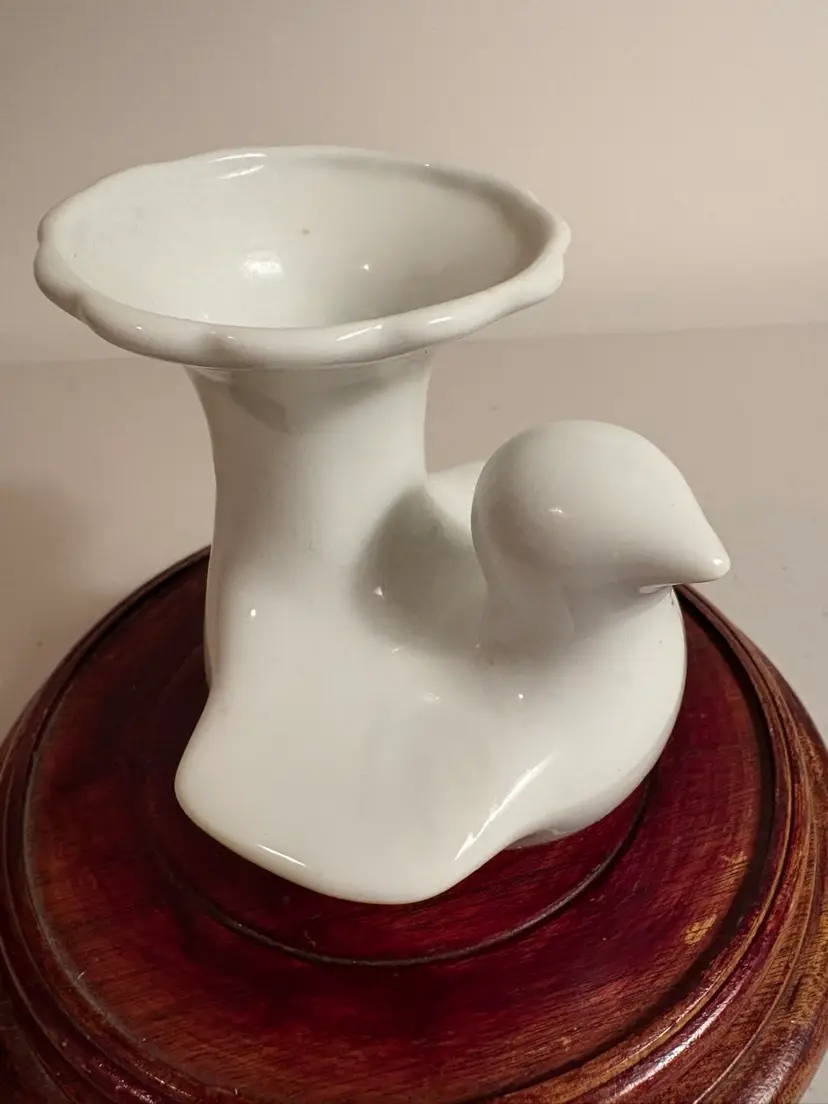 Vintage/ Swedish Modern/ White Porcelain Bird Bud Vase/ Dove/ 4" H Perfect little accent for your MId Century Modern table or shelf. Just the right size for a few buds or blooms. White porcelain bird/ dove. Stands 4" H.