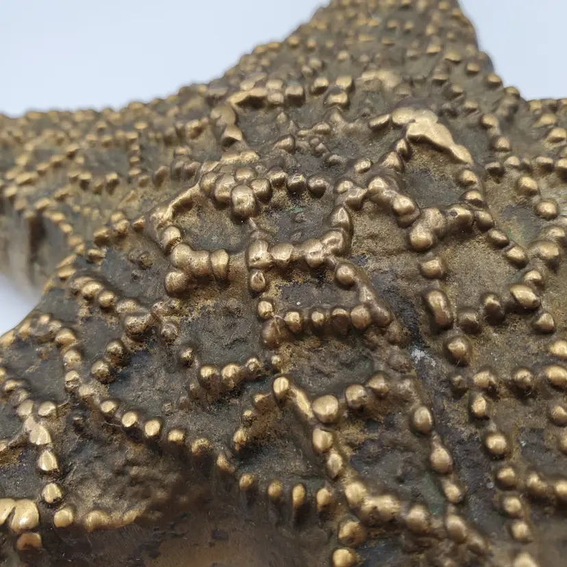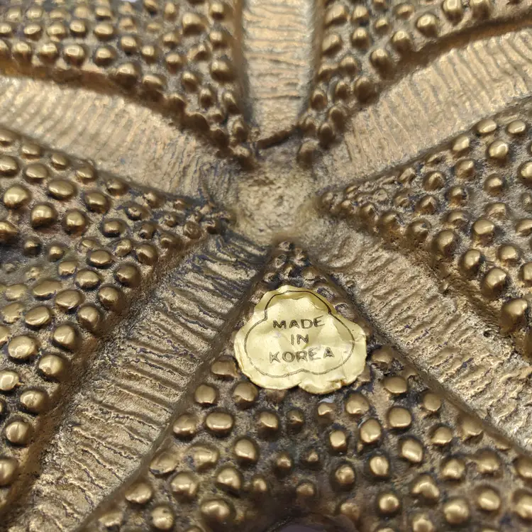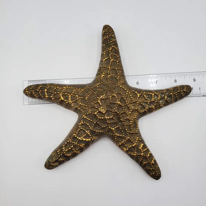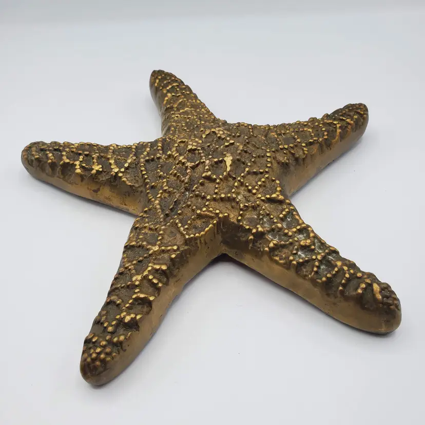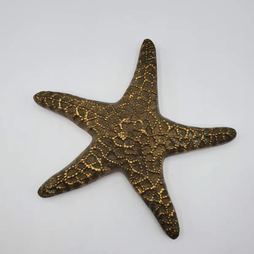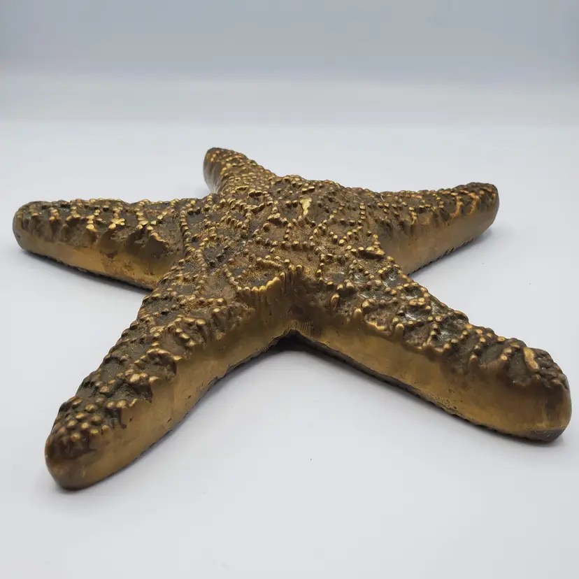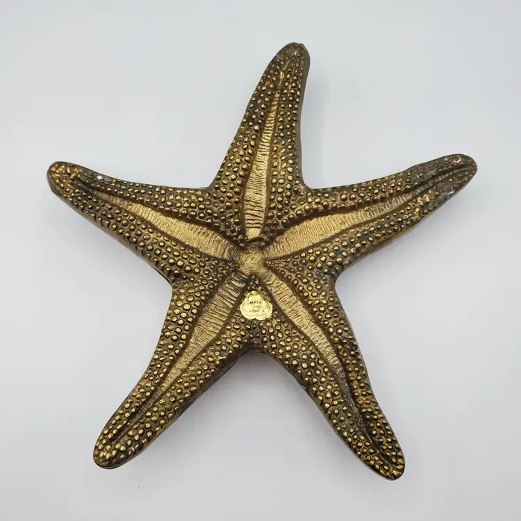 Add a touch of the ocean to your home with this vintage brass starfish Paperweight decor. Featuring a textured surface and the original vintage Made In Korea label , this piece is perfect for coastal or nautical-themed spaces. Measures approximately 9 inches across. In excellent vintage condition.