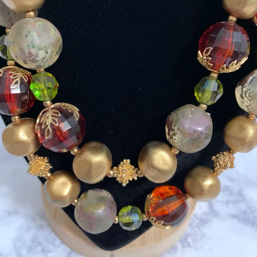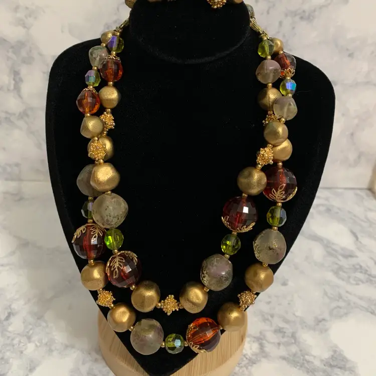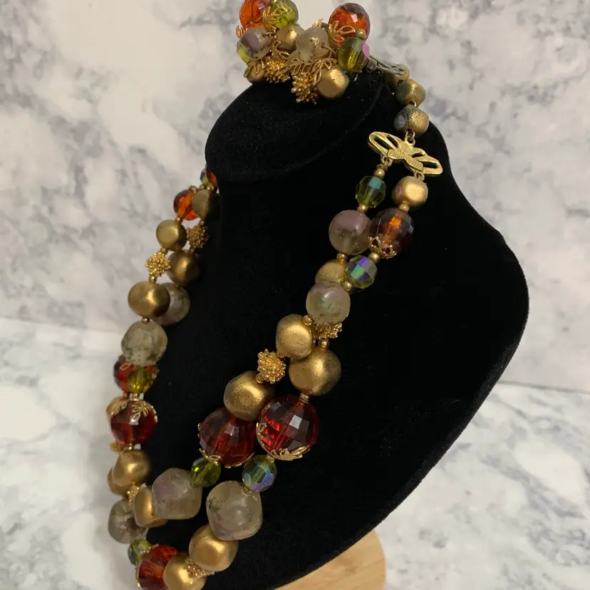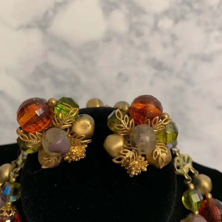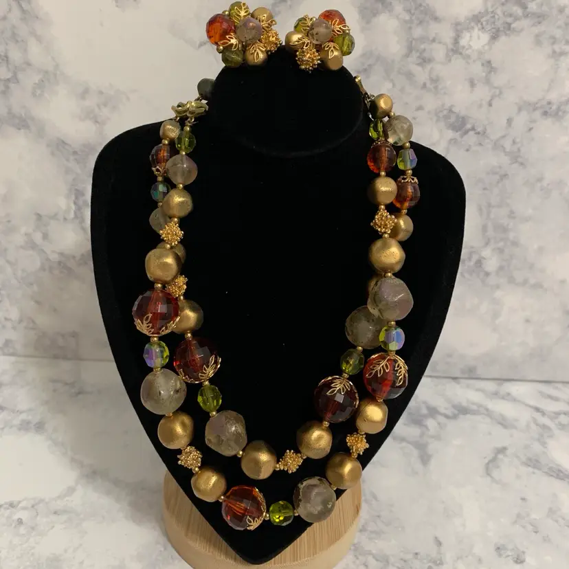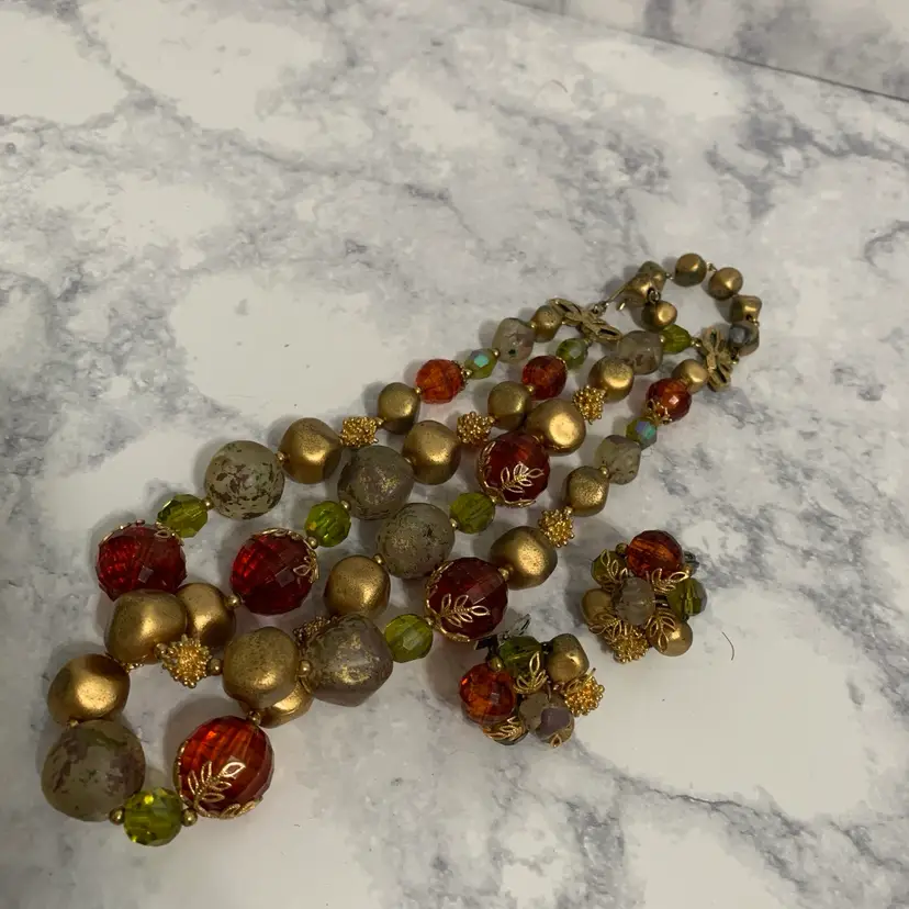 Beautiful vintage Deaville beaded necklace and matching clip earrings. MCM. Clips can be easily converted to pierce. Lovely with sweater for fall.