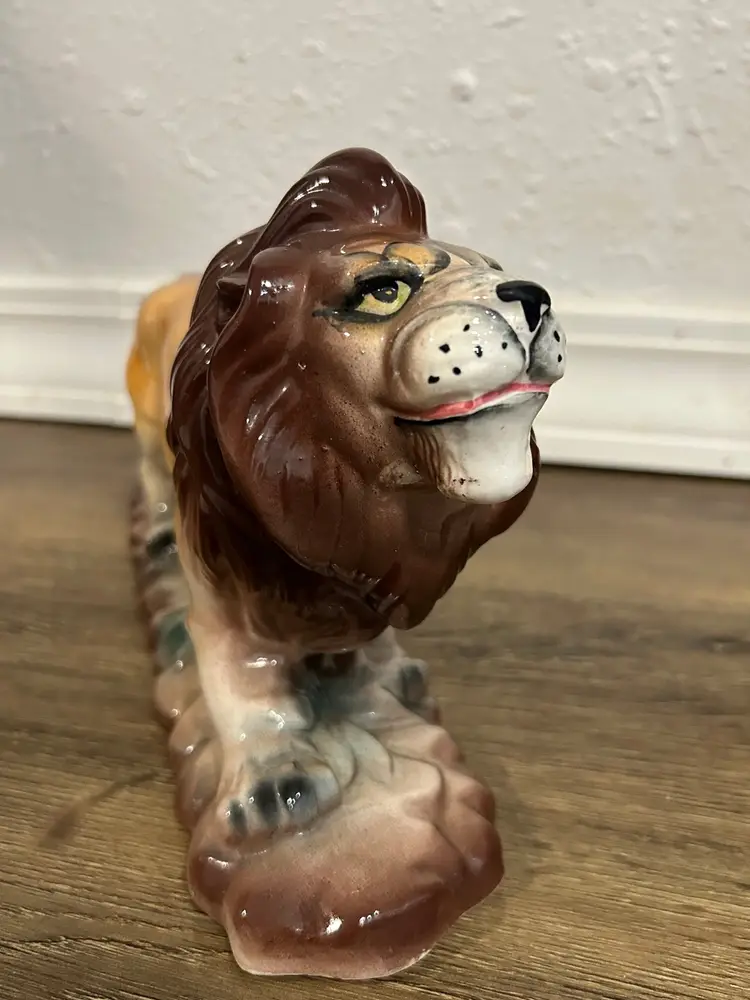 Vintage Mid Century JAPAN Ceramic Lion 12.5” Animal Figurine 12.5x7
