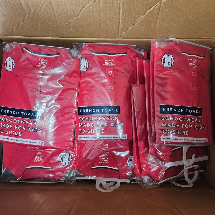 This will include 60 Medium Girl's French Toast uniform polos. Brand new in package.