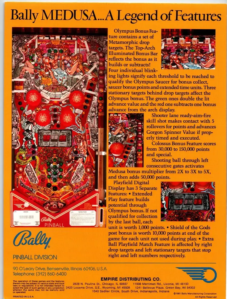 Brand: Bally Model: Medusa Country/Region of Manufacture: United States Original: Paper Advertising Flyer Pinball: Flyer