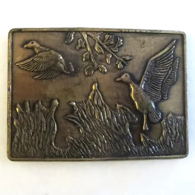 This buckle has no brand name showing. 3 1/2 x 3 1/2.
